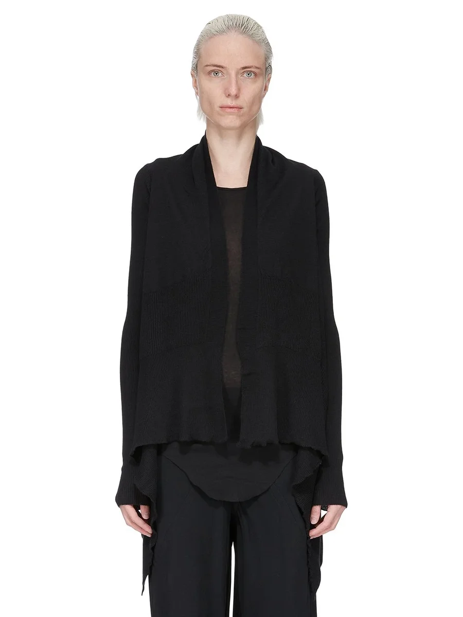 RICK OWENS FOREVER MEDIUM WRAP IN ZWART, LICHTGEWICHT RASATO KASJMIER GERIBBELD.