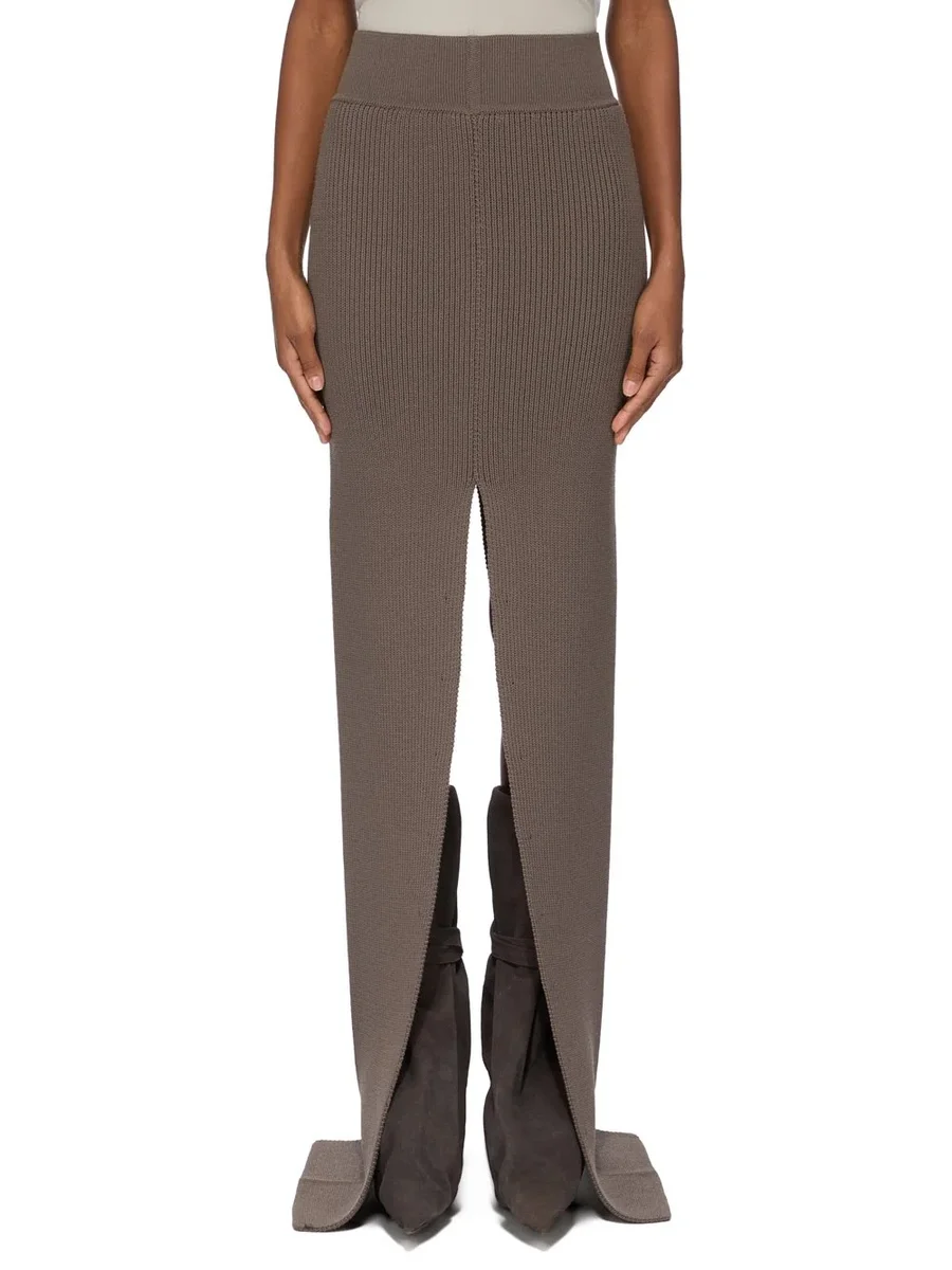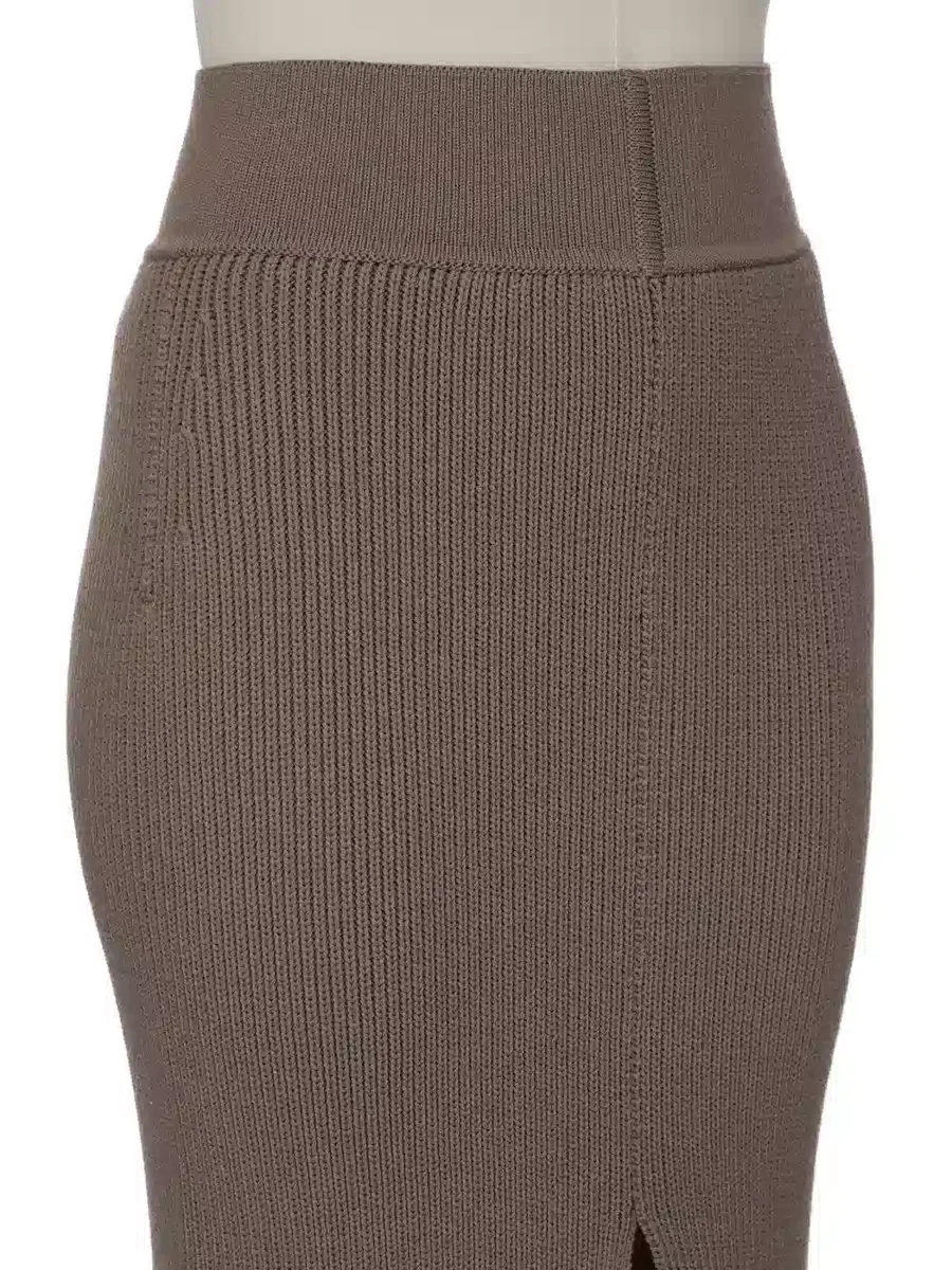DEZE GESNEDEN ROK IS LANGS DE ZIJKANTEN. HIJ HEEFT EEN ELASTISCHE TAILLEBAND EN EEN NAUWSLUITENDE PASVORM. HIJ HEEFT TWEE HOGE SPLITTEN AAN DE VOOR- EN ACHTERKANT.