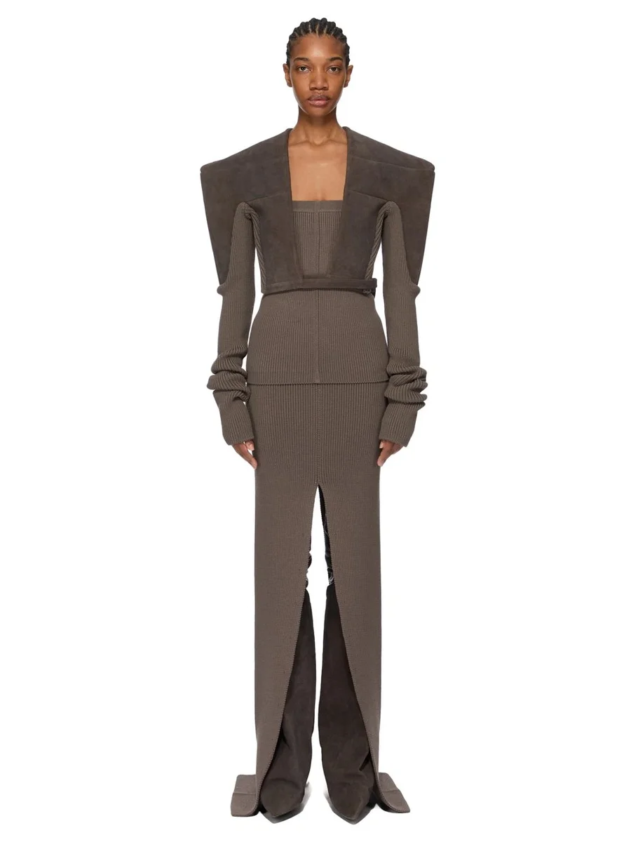 RICK OWENS FW25 CONCORDIANS RUNWAY TUBE TOP IN DARKDUST WOOL