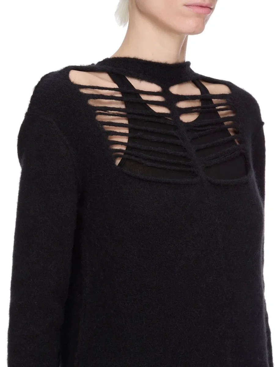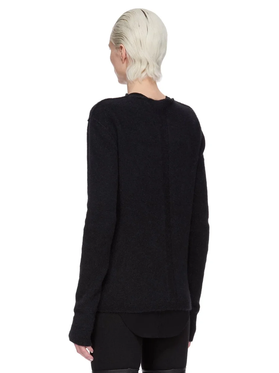 RICK OWENS FW25 CONCORDIANS LS TOP IN ZWART ALPACA GRID BREIWERK