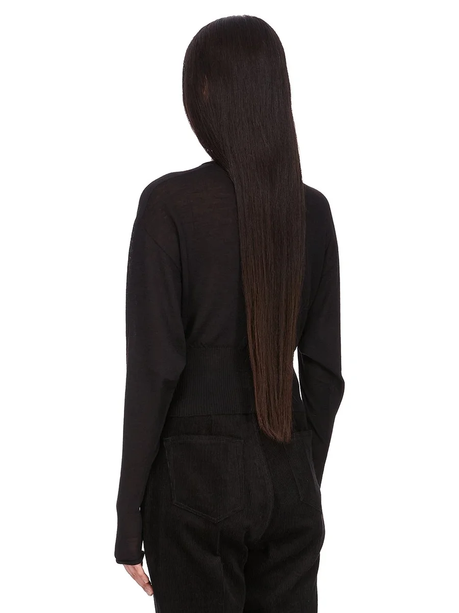 RICK OWENS FW25 CONCORDIANS V CROPPED TOP IN ZWART LICHTGEWICHT RASATO GEBREID