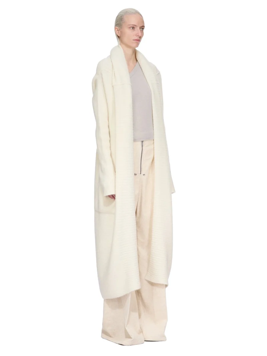 RICK OWENS FW25 CONCORDIANS LANGE CARDIGAN IN MELK ALPACA GERIBDE STRIK