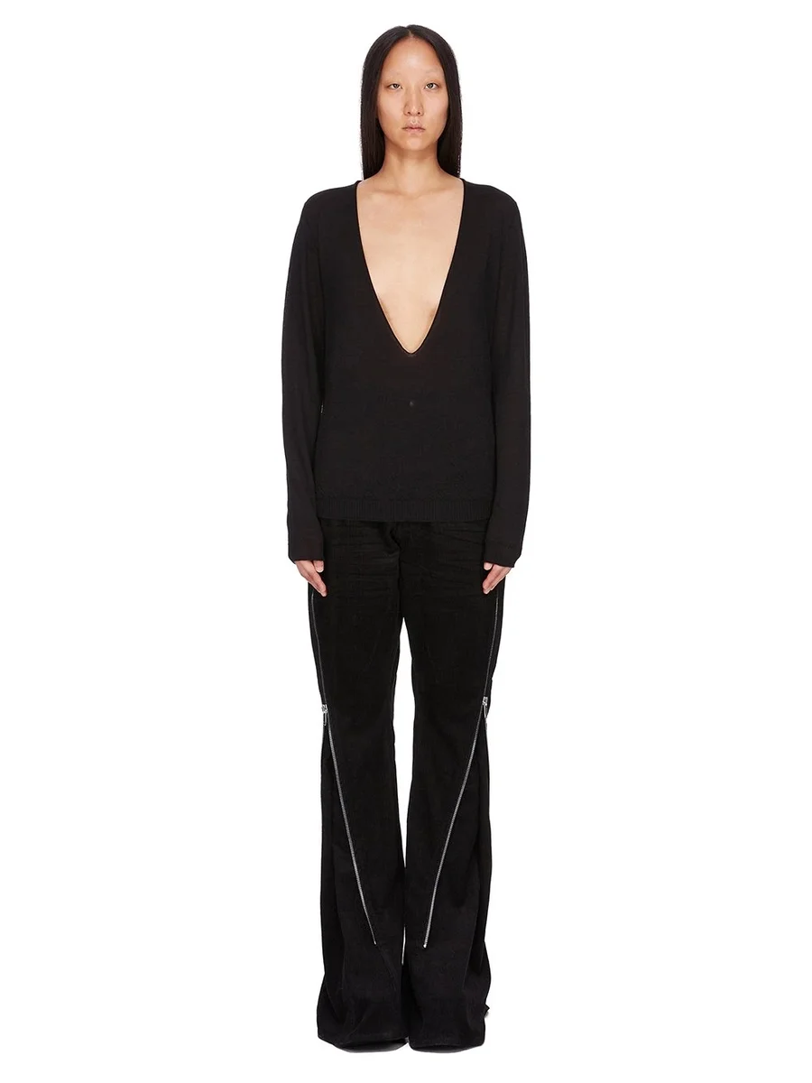 RICK OWENS FW25 CONCORDIANS EXTREME V-HALS TRUI IN ZWART LICHTGEWICHT RASATO GEBREID