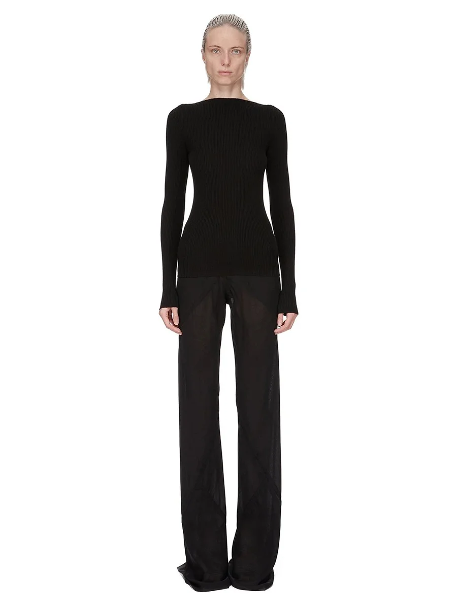RICK OWENS FW25 CONCORDIANS AL TOP IN ZWARTE GERIBDE BREINIGING