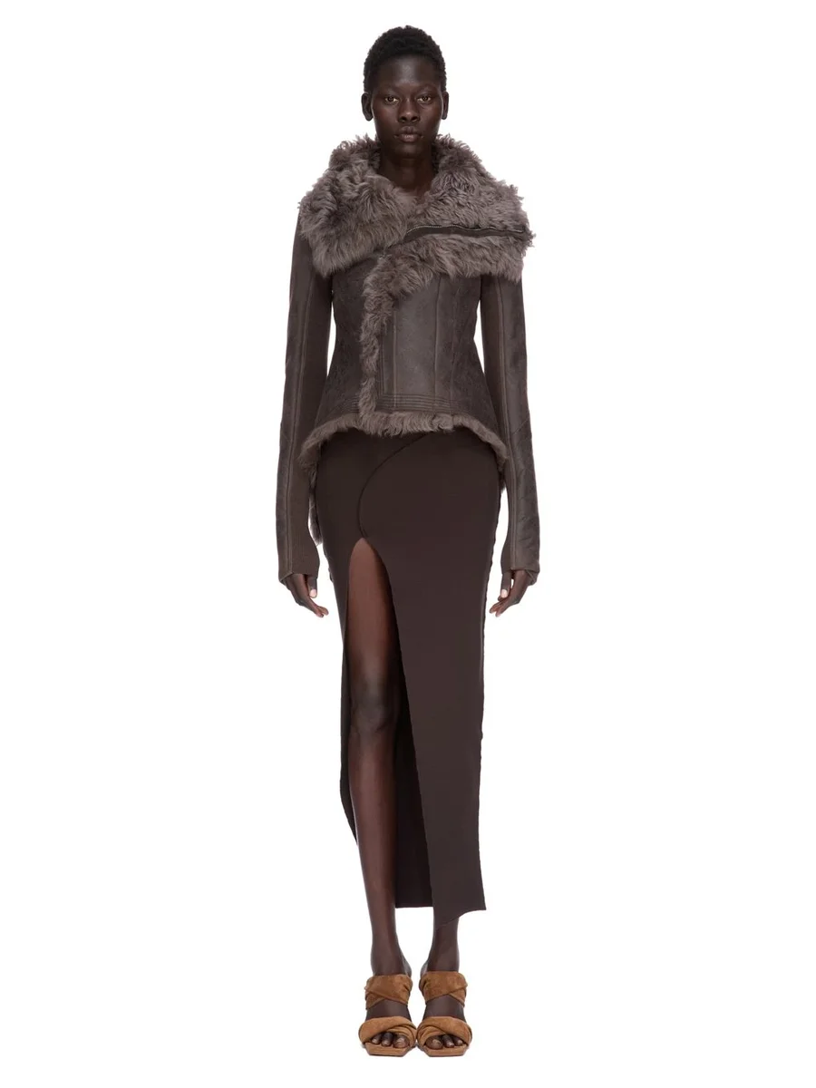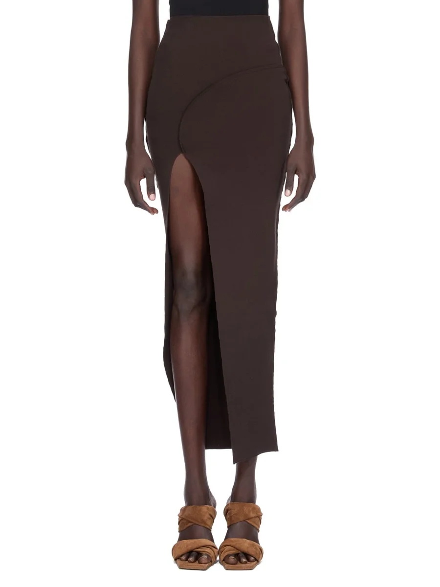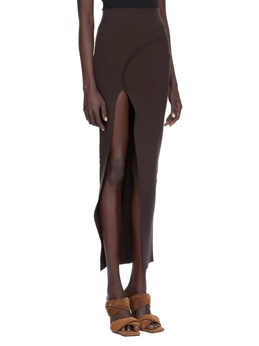 RICK OWENS FW25 CONCORDIANS THERESA ROK IN BRUINE STRETCH VISCOSE BREIDE STRAK
