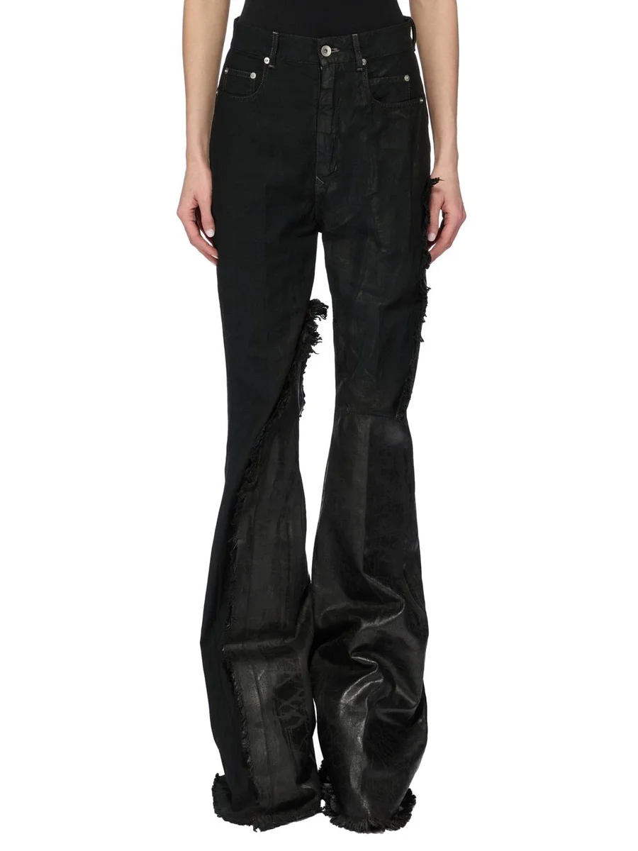 RICK OWENS FW25 CONCORDIANS RUNWAY BOLAN BOOTCUT IN 13OZ ZWARTE MEGACRUST DENIM EN KATOENEN TELA