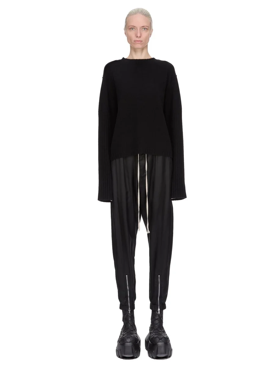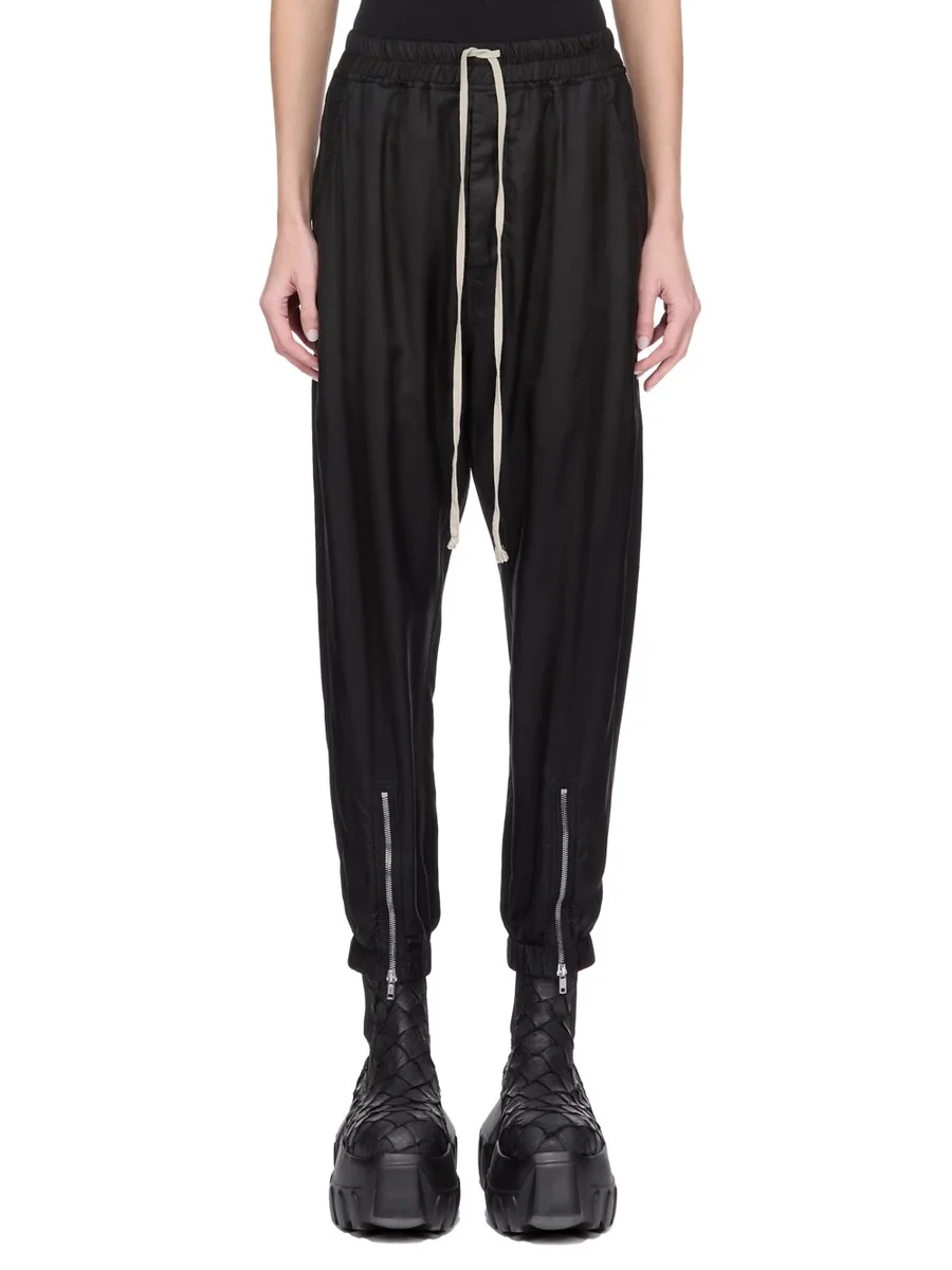 RICK OWENS FW25 CONCORDIANS TECUATL TRACKBROEK IN ZWARTE CUPRO TWILL