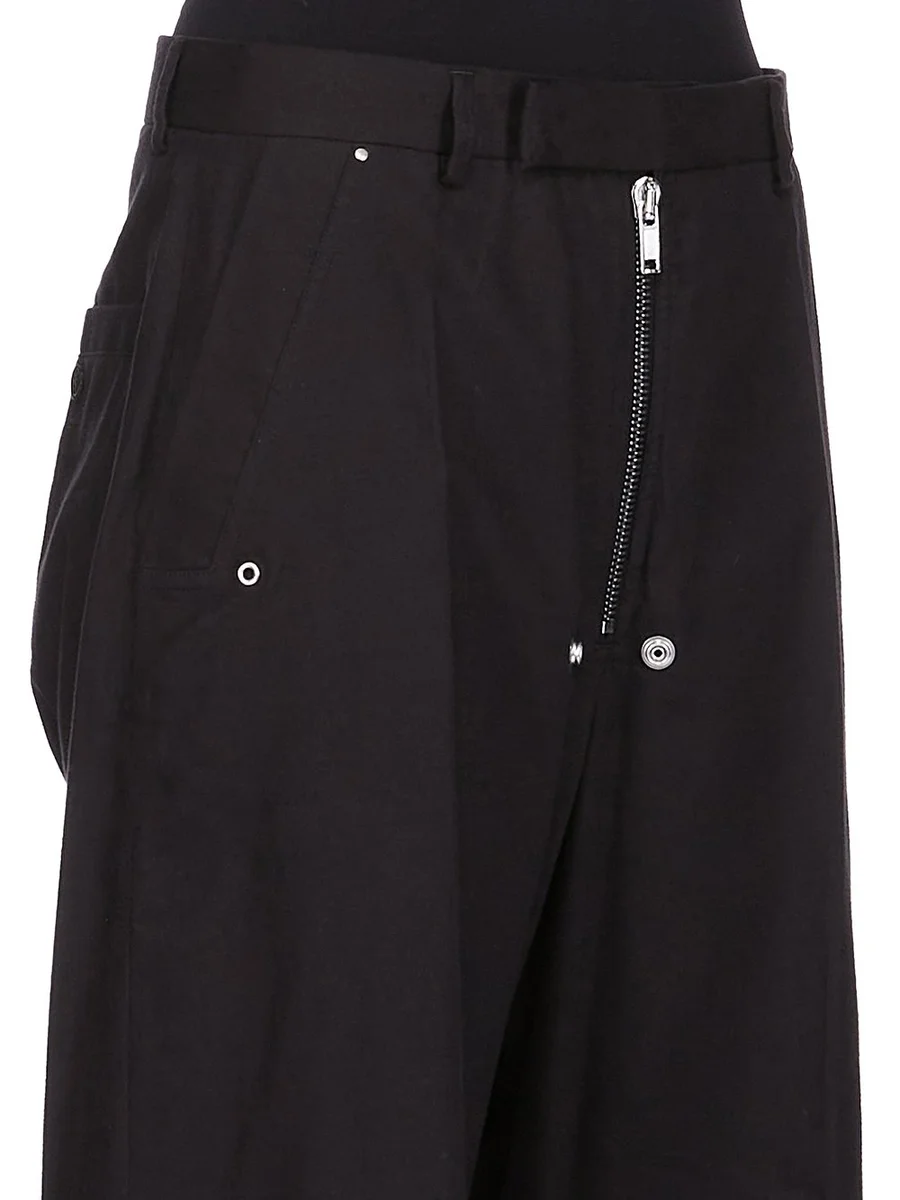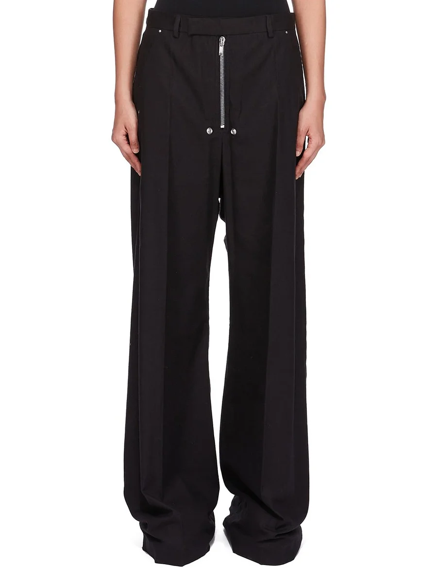RICK OWENS FW25 CONCORDIANS OP MAAT GEMAAKTE WIJDE BELAS IN ZWARTE WOLLEN FLANEL