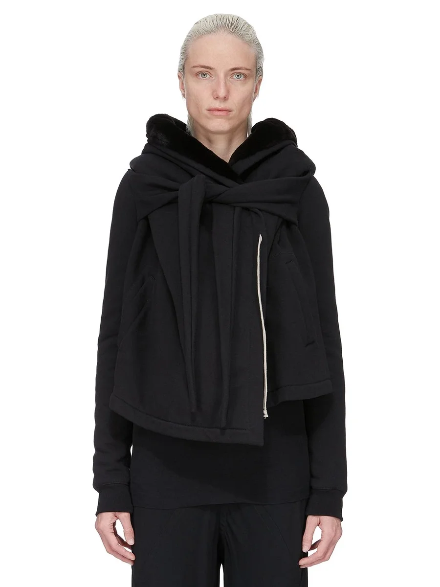 RICK OWENS HUN CROPPED CAPUCHON WRAP IN HET ZWART