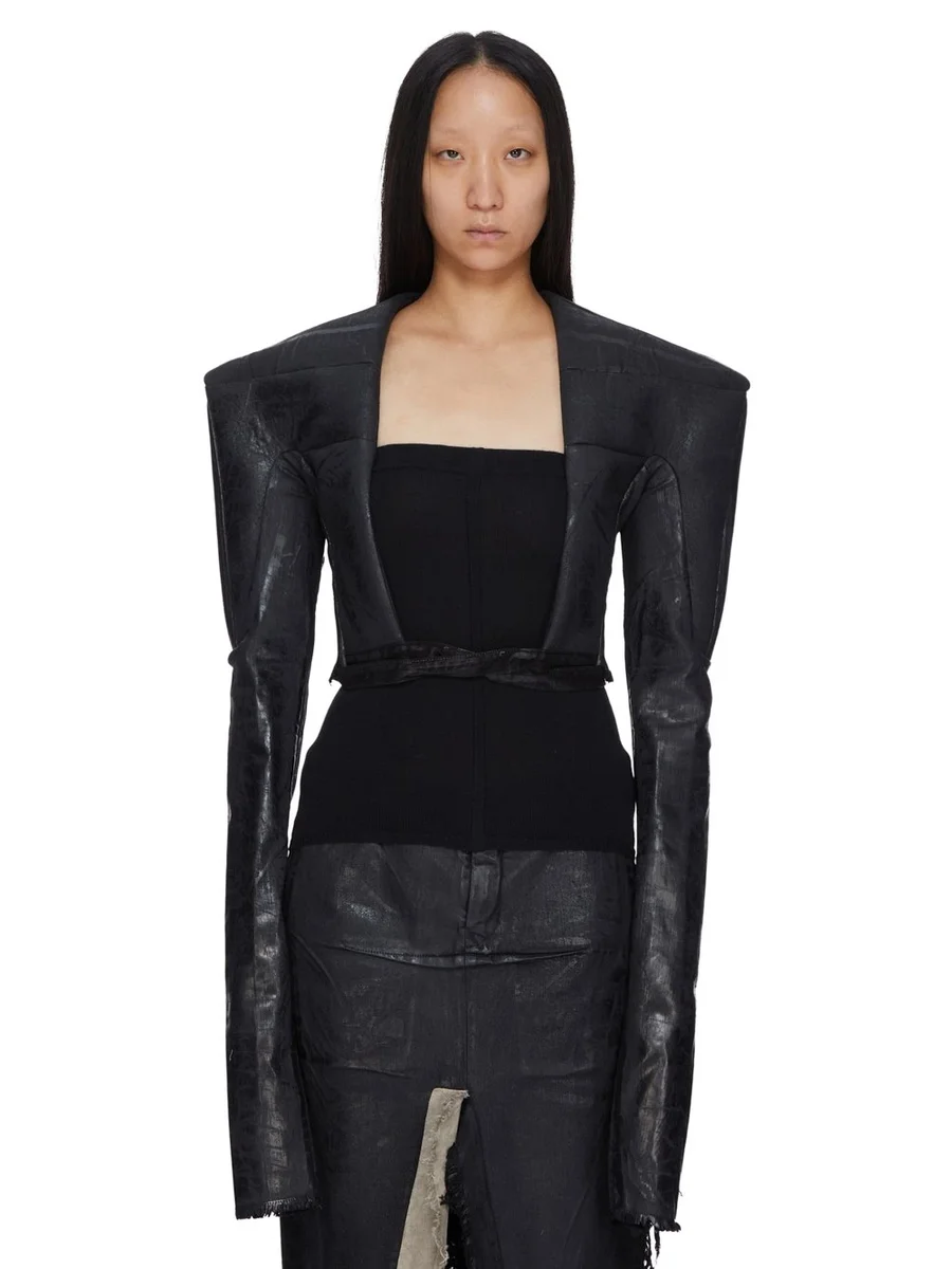 RICK OWENS FW25 CONCORDIANS RUNWAY TIGHT JKT IN ZWART 13OZ ZWARTE MEGACRUST