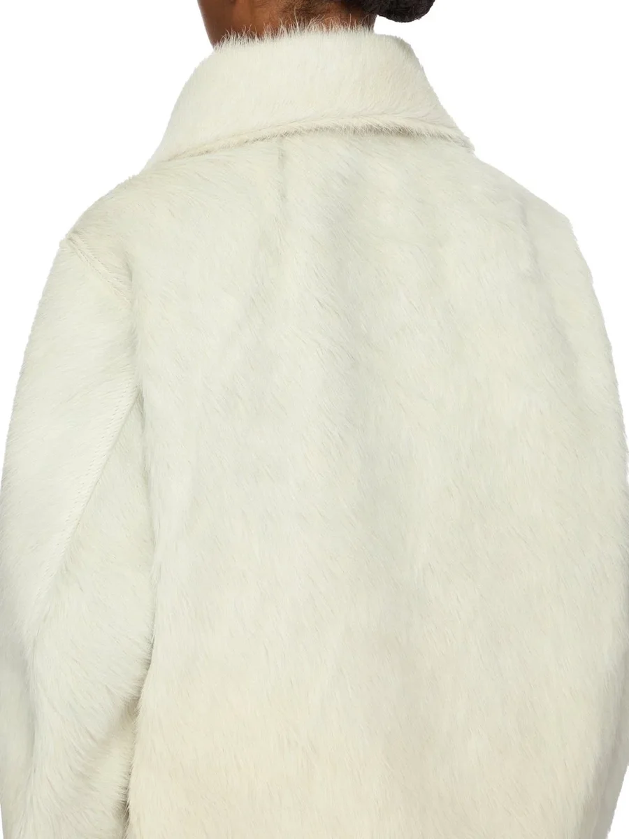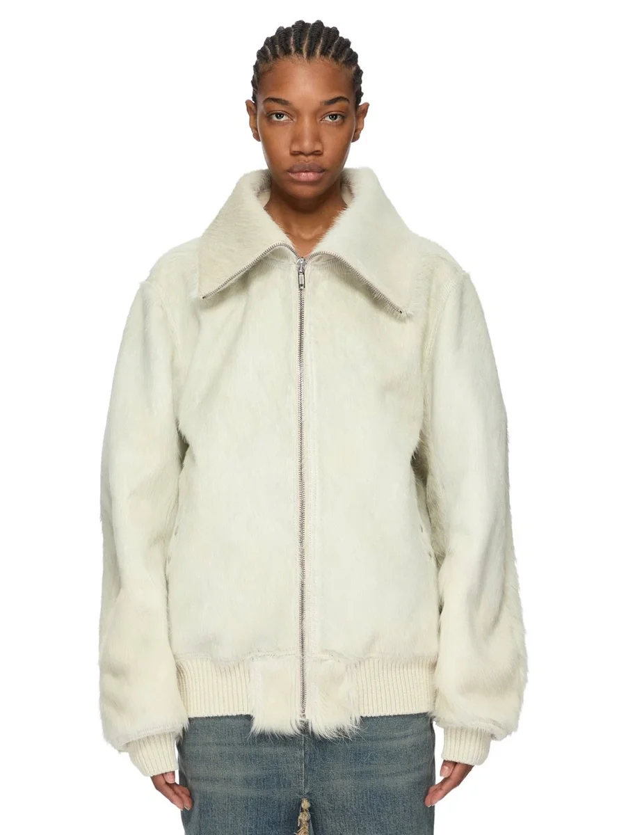 DEZE KLEUR WORDT BEREIKT DOOR HET BLEEKEN VAN HET NATUURLIJKE RUNDERHAAR. KLEURVERSCHILLEN, VOORAL GELE TINTEN, KUNNEN VOORKOMEN ALS GEVOLG VAN NATUURLIJKE URINEVLEKKEN. DIT BETEKENT DAT GEEN TWEE PRODUCTEN PRECIES HETZELFDE ZIJN, WAARDOOR ELK PRODUCT ZIJN INDIVIDUELE UNIEKHEID HEEFT. DIT MOET NIET ALS EEN DEFECT WORDEN BESCHOUWD, MAAR HET ZIJN DE VISUELE ASPECTEN DIE RICK OWENS SPECIFIEK WIL.