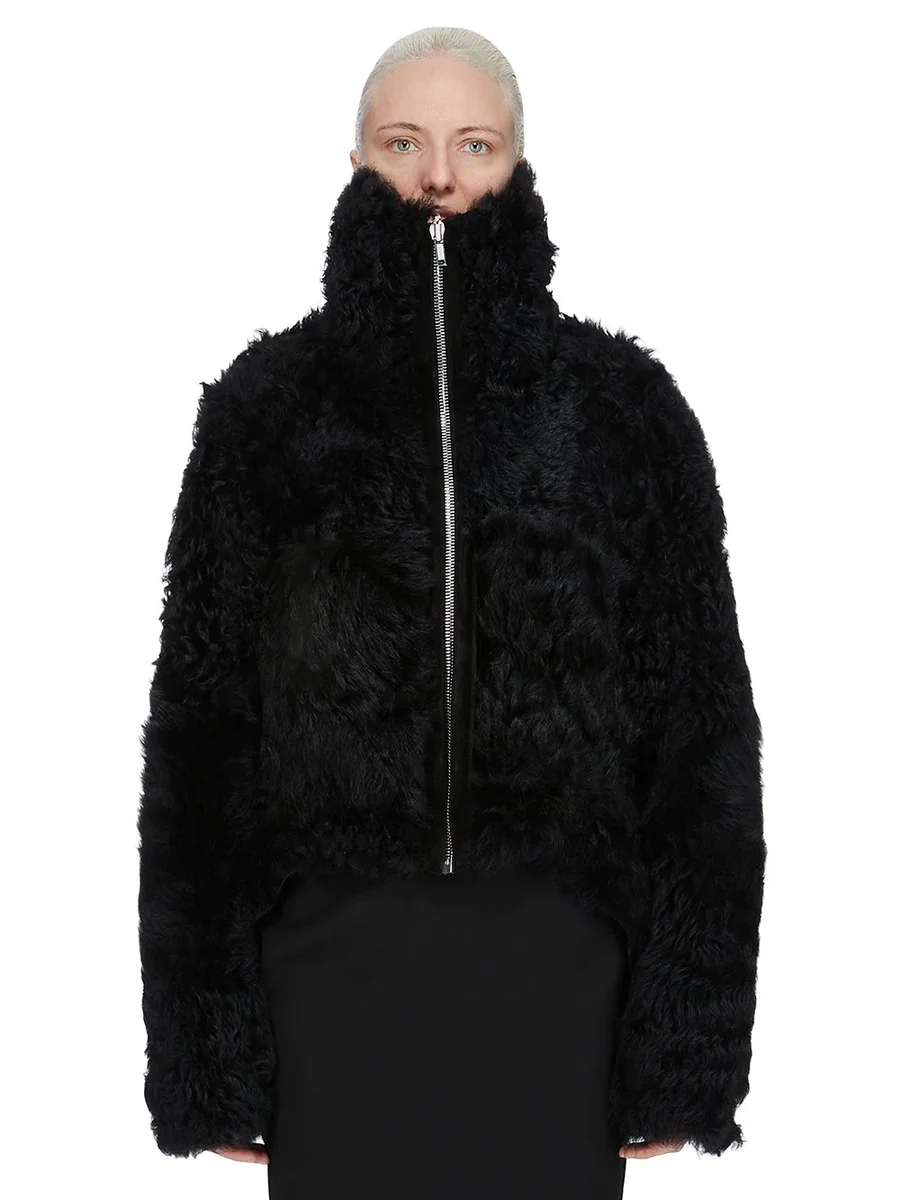 RICK OWENS FW25 CONCORDIANS EXPLODER JKT IN ZWART TOSCANA SHEARLING