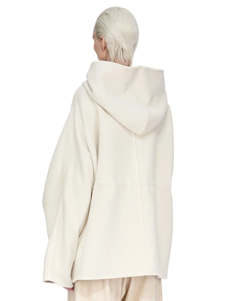 RICK OWENS FW25 CONCORDIANS JKT MET RITSSLUITING EN CAPUCHON IN MILK/PEARL DOUBLE CAMEL
