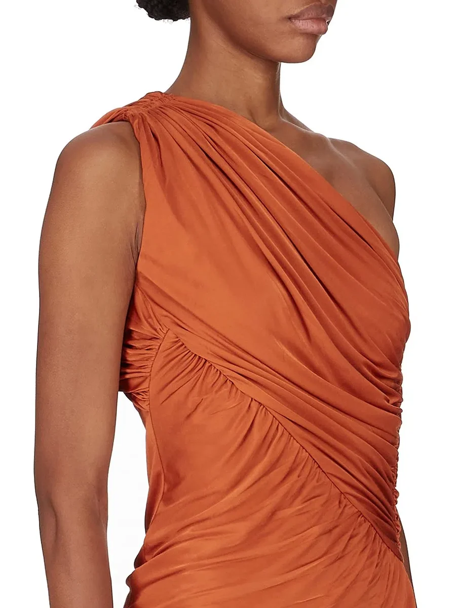 RICK OWENS FW25 CONCORDIANS AMIRA JURK IN ORANJE SATIJNEN VISCOSE JERSEY.