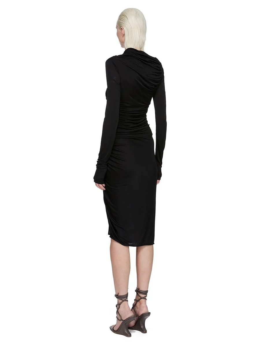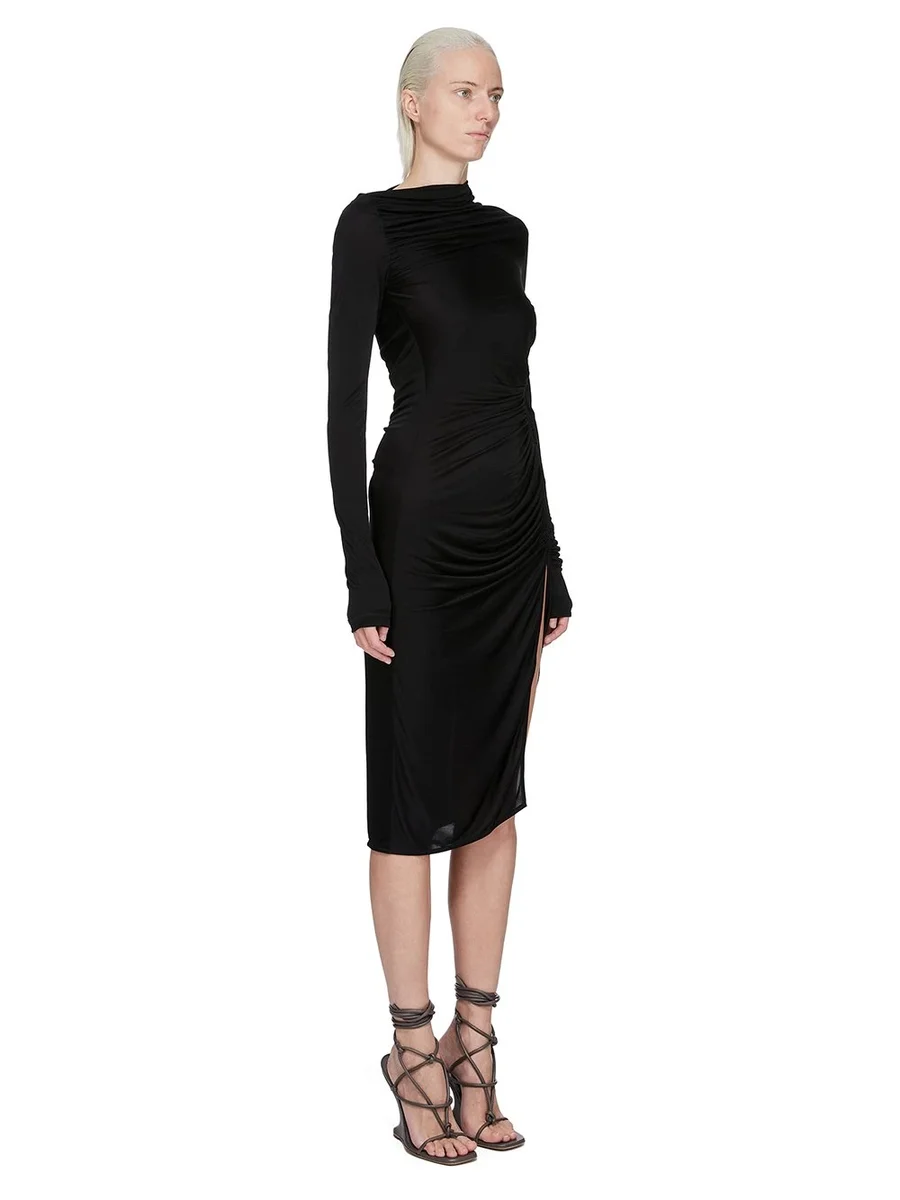 RICK OWENS FW25 CONCORDIANS SVITA LS JURK IN ZWARTE SATIJNEN VISCOSE JERSEY