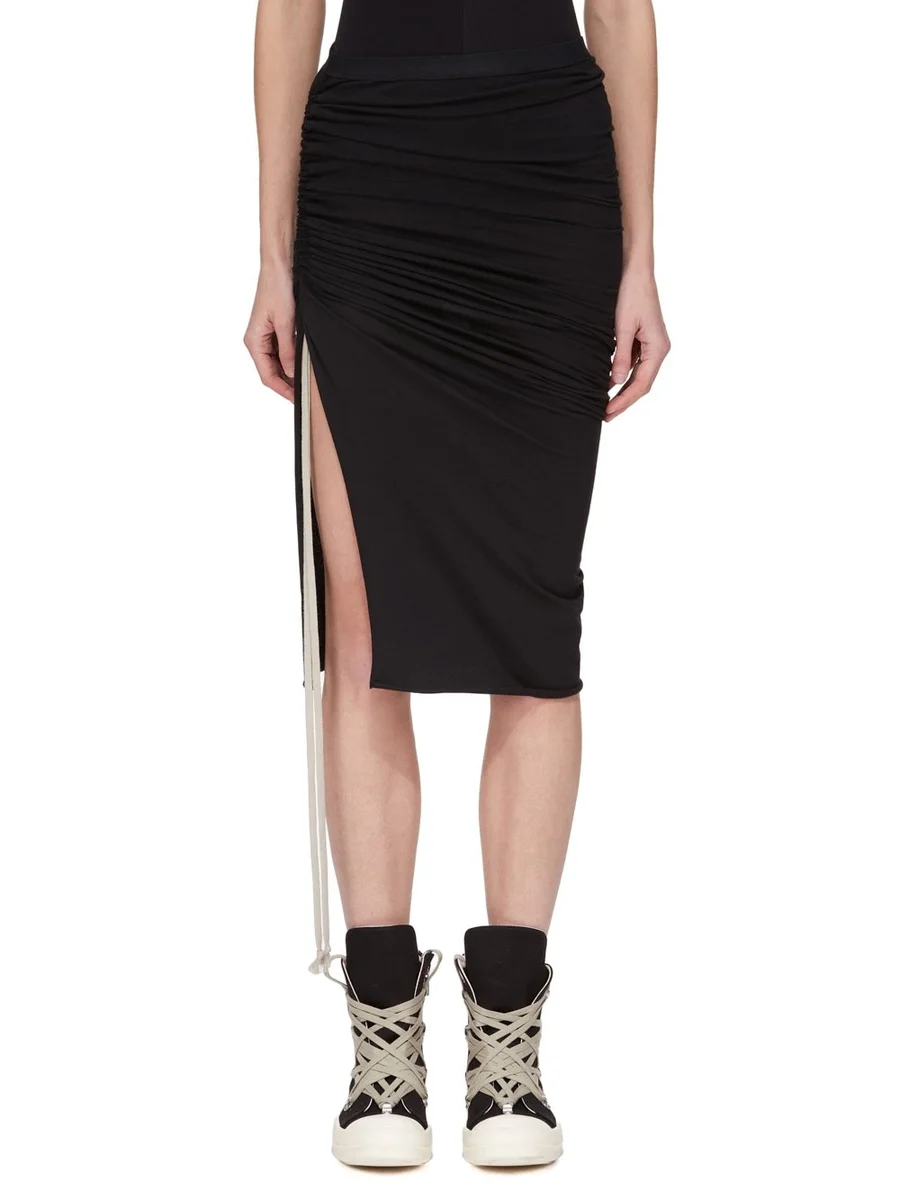 DRKSHDW FW25 CONCORDIANS SOFT EDFU KNIEROK IN ZWARTE MIDDELZWARE KATOENEN JERSEY