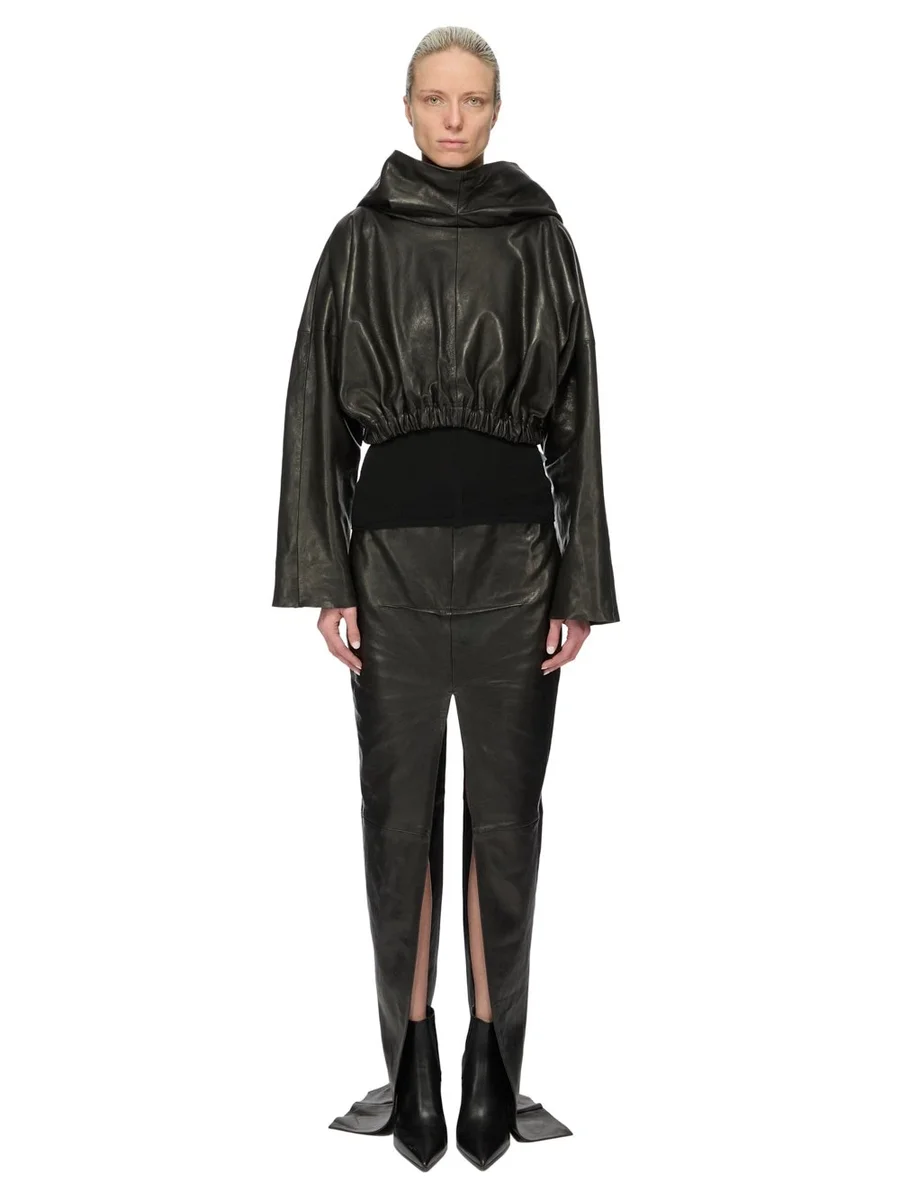 RICK OWENS FW25 CONCORDIANS RUNWAY SLICED ROK IN ZWART VEG NAPPA LAMSLEER