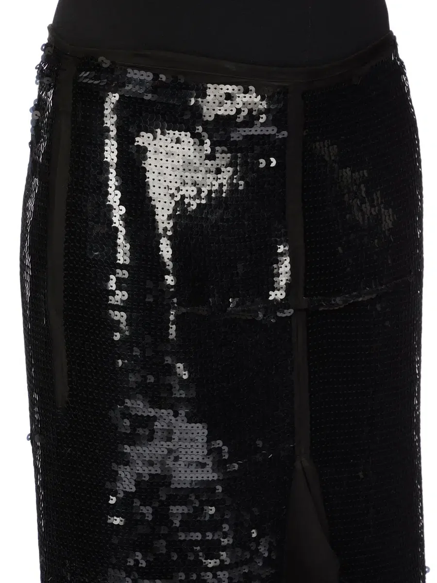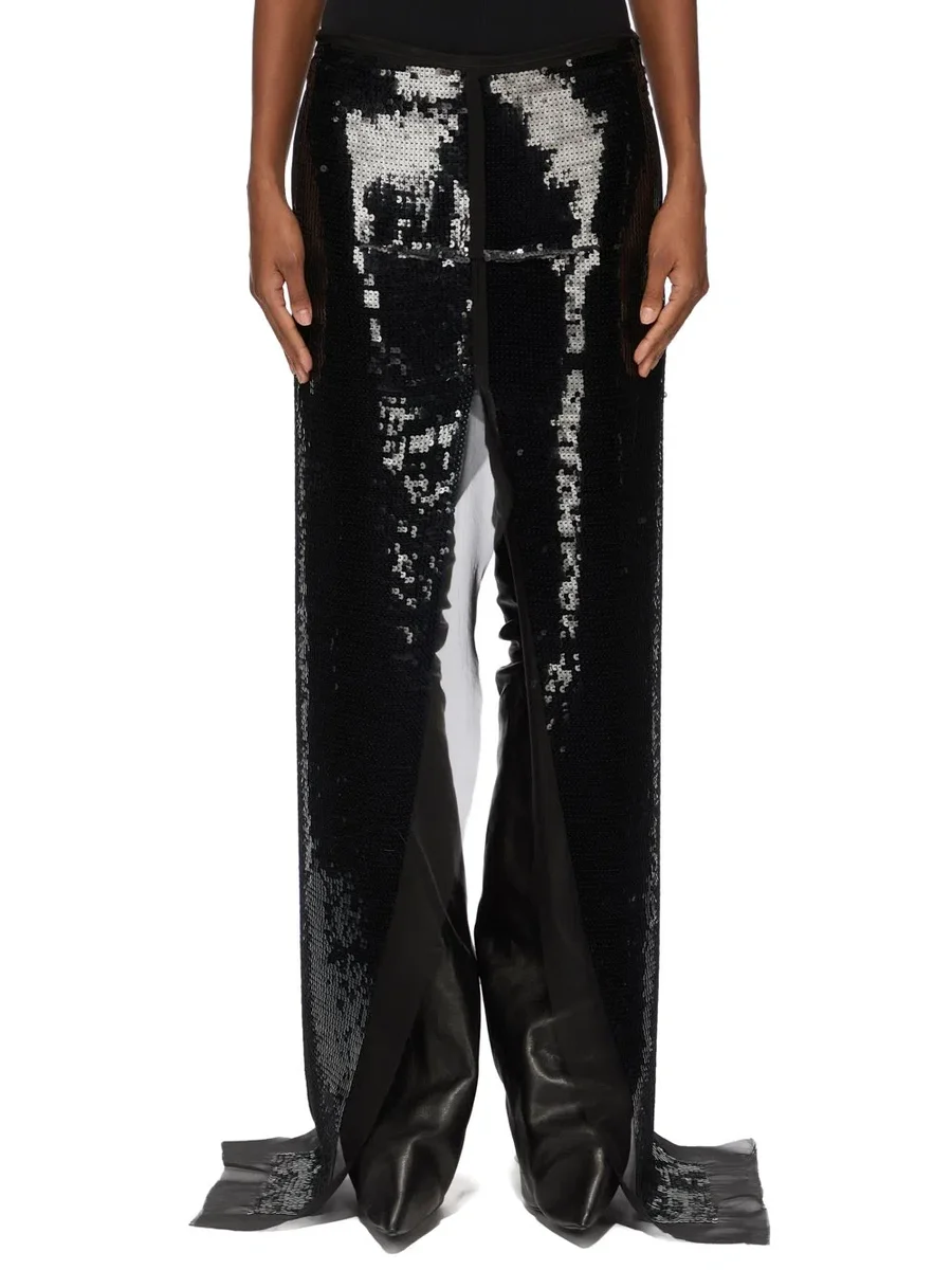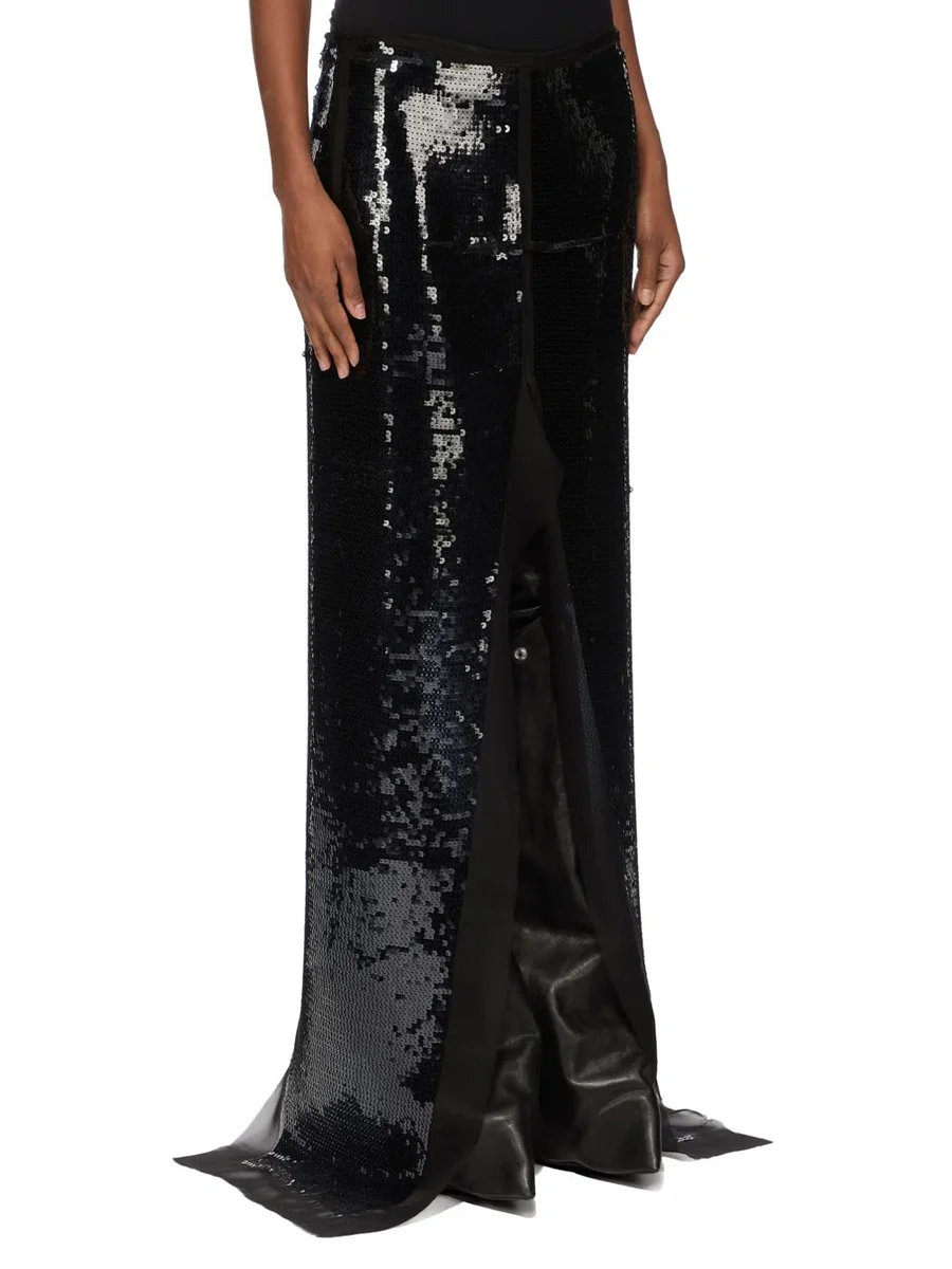 RICK OWENS FW25 CONCORDIANS CURRICULUM SLICED ROK IN ZWARTE GEBORDUURDE ZIJDEN CHIFFON