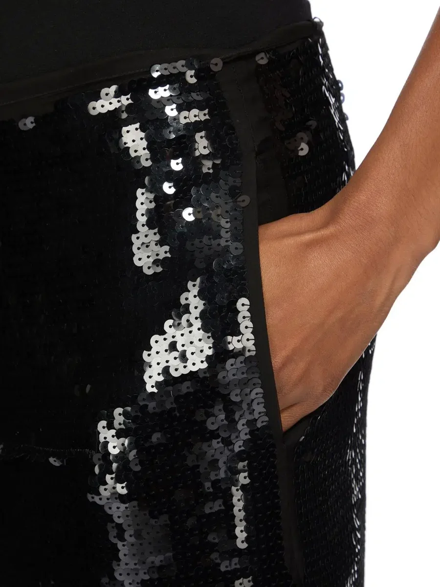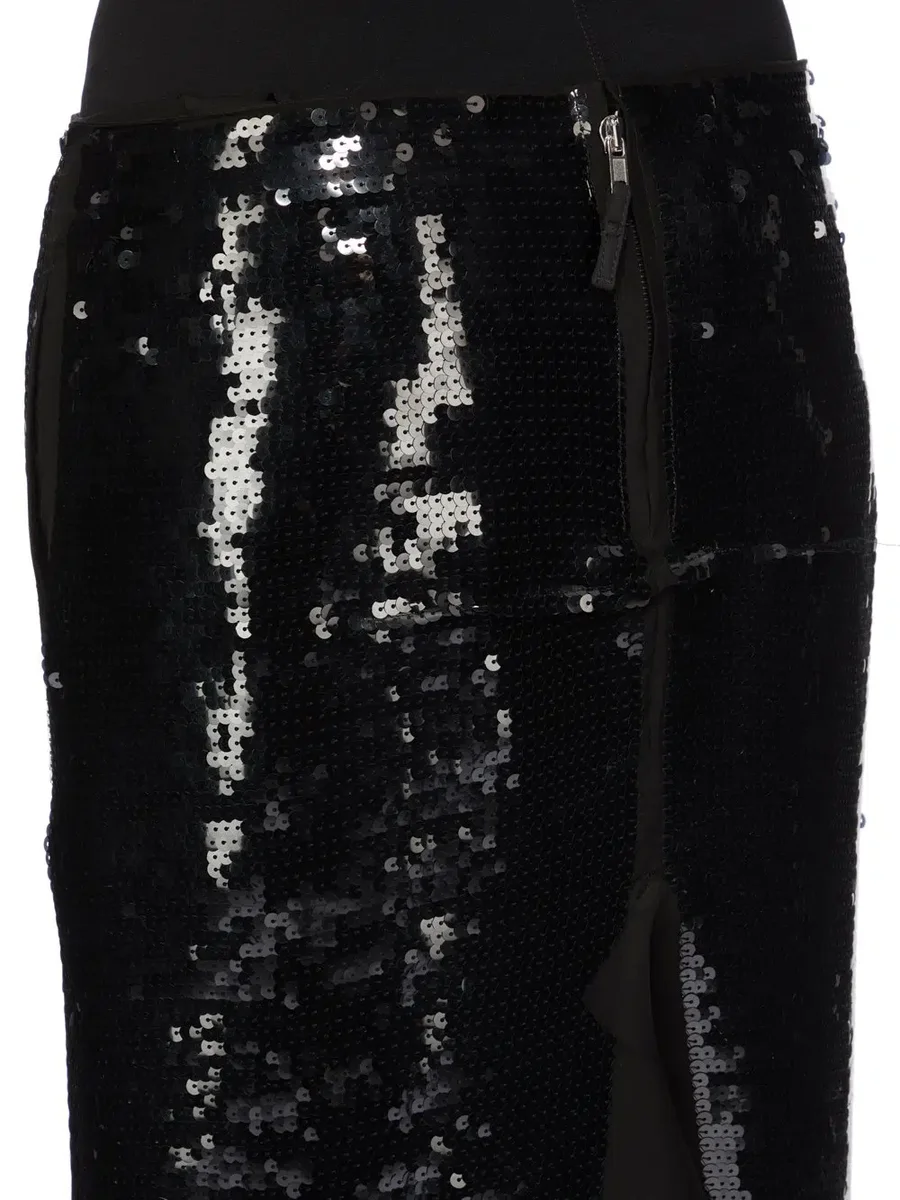 DEZE SLICED ROK IS LANGS DE ZIJKANTEN. HIJ HEEFT EEN RITSSLUITING IN HET MIDDEN VAN DE ACHTERKANT EN EEN NAUWSLUITENDE PASVORM. HIJ HEEFT TWEE HOGE SPLITTEN AAN DE VOOR- EN ACHTERKANT EN EEN STIEKRAND OP DE VOOR- EN ACHTERKANT. HET HEEFT ZIJNAADZAKKEN.