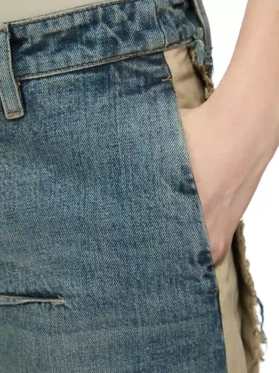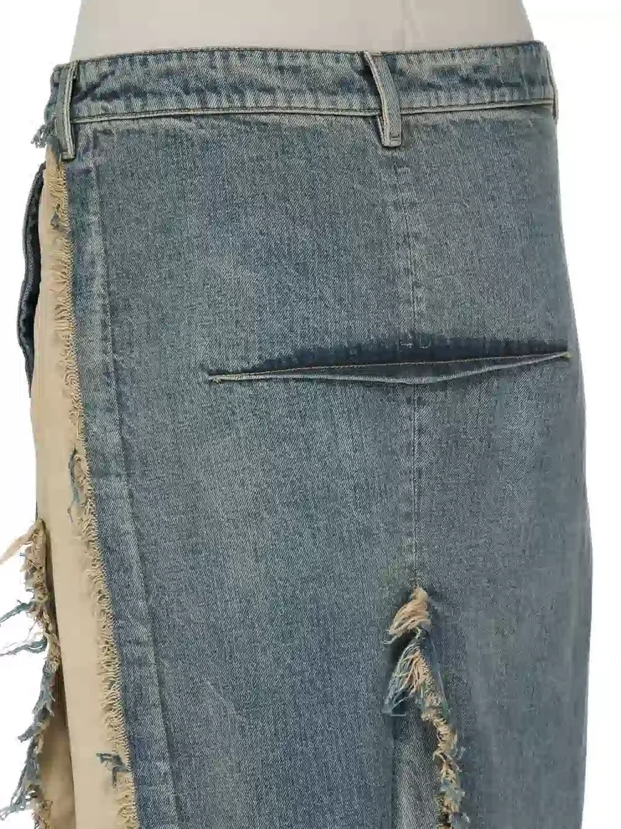 RICK OWENS FW25 CONCORDIANS RUNWAY DENIM SLICED ROK IN DIRTY HUSTLER/NATURAL 14OZ HUSTLER SLUB DENIM EN KATOENEN TELA