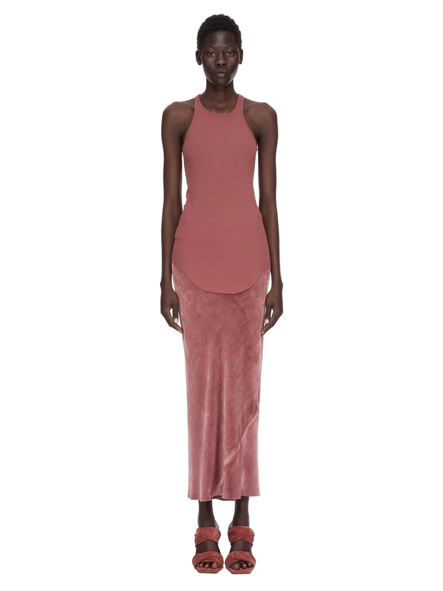DEZE KUITENROK HEEFT EEN LAGE KUITLENGTE MET EEN BREDE RIBBING EN EEN ELASTISCHE TAILLEBAND. DEZE STOF IS GEMAAKT VAN GECERTIFICEERD VISCOSE, WAT GARANDEERT DAT DE VEZELS UIT VERANTWOORD BEHEERD WORDEN EN ER GEEN ONTBOSSING PLAATSVINDT.