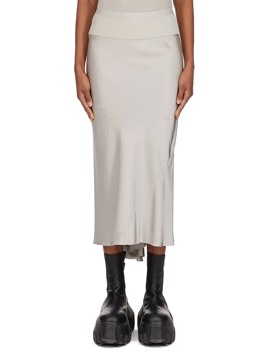RICK OWENS FW25 CONCORDIANS A-LIJN BIAS ROK IN PEARLWASHED CHARMEUSE