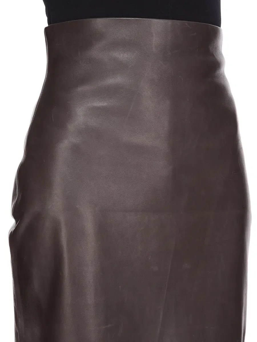 DEZE DIRT PILLAR ROK IS ENKELHOOG EN HEEFT EEN NAUWSLUITENDE PASVORM. HET HEEFT EEN EXTRA HOGE TAILLE MET EEN RITSSLUITING OP DE ACHTERKANT, EEN TAPSE ROK EN EEN SPLIT IN DE MIDDENSTE ACHTERNAAD TOT AAN DE KNIE.