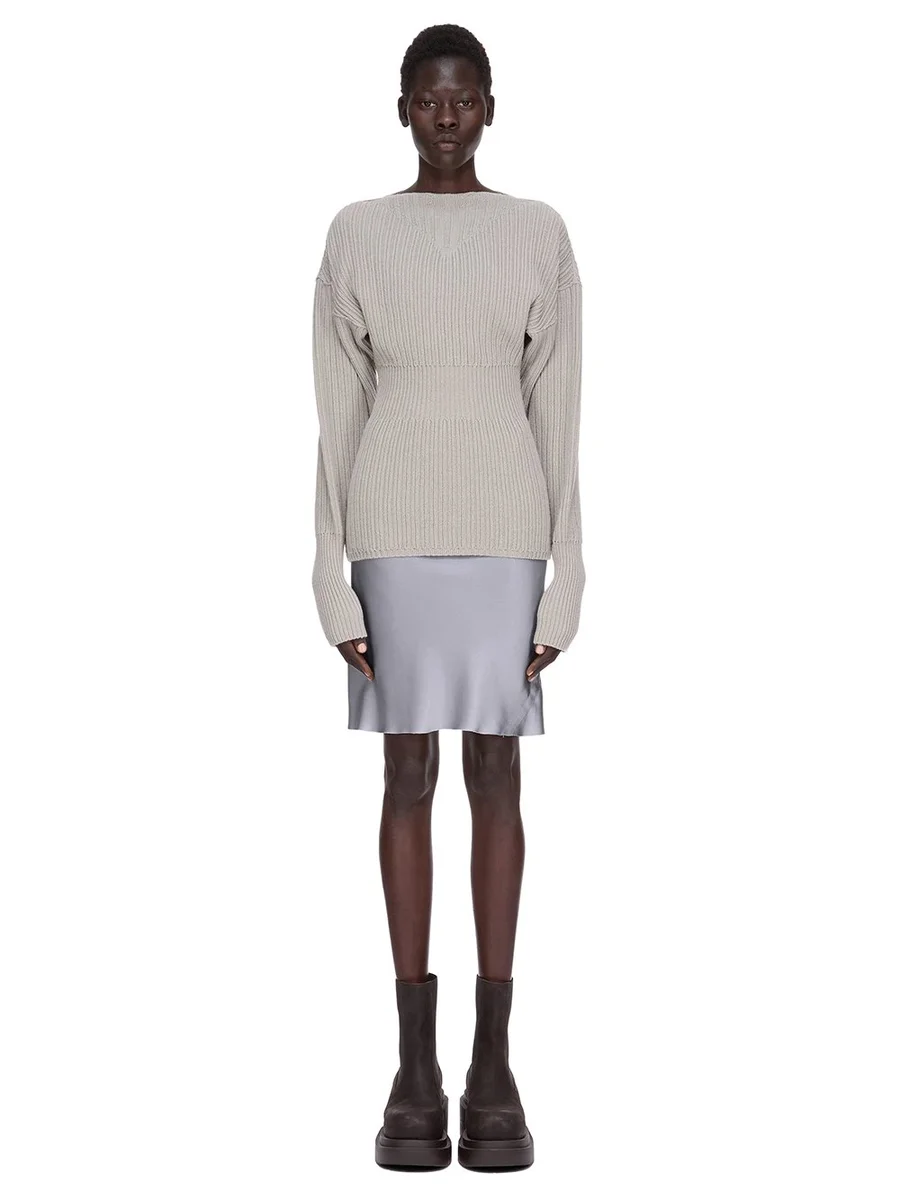 RICK OWENS FW25 CONCORDIANS KORTE BIAS ROK IN GEWASSEN INDIGO GEWASSEN CHARMEUSE