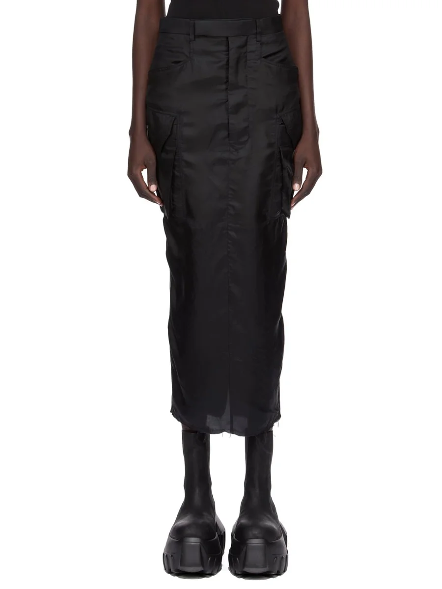 RICK OWENS FW25 CONCORDIANS FIRBANKS ROK IN ZWARTE CUPRO TWILL