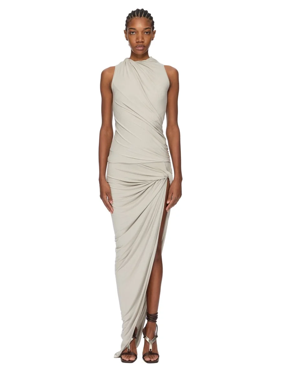 RICK OWENS FW25 CONCORDIANS TWIST EDFU ROK IN PEARL SATIN VISCOSE JERSEY