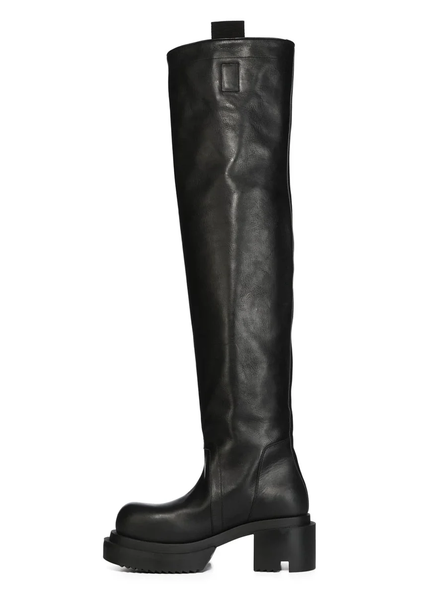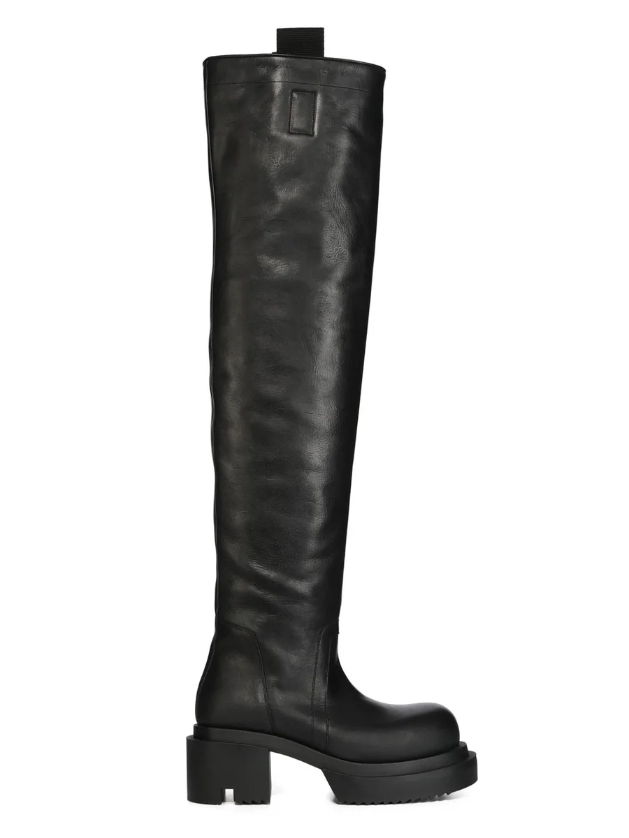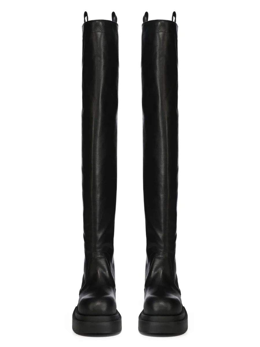 RICK OWENS FW25 CONCORDIANS RUNWAY WADER BOGUN IN ZWART GEWASSEN KALFSLEER