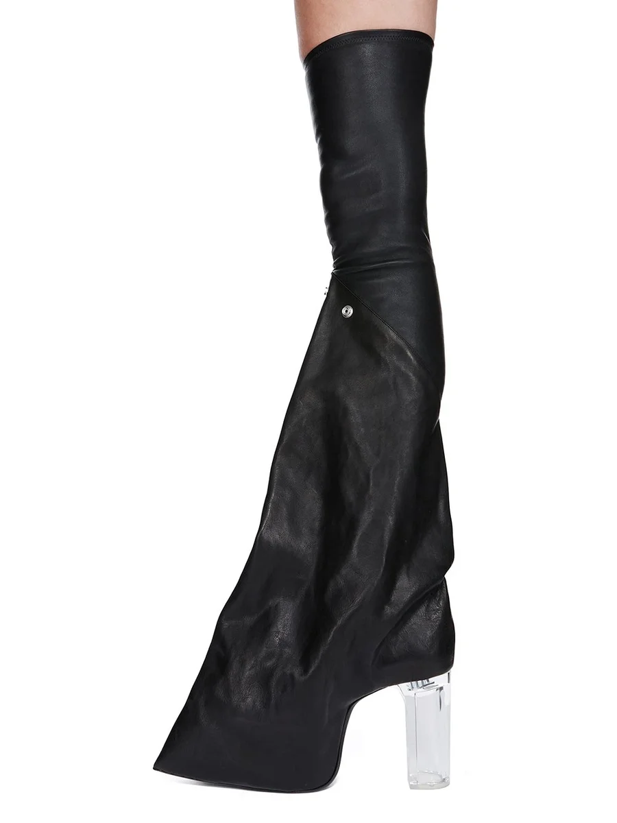RICK OWENS FW25 CONCORDIANS RUNWAY TACO KISS IN ZWART/DOORZICHTIG STRETCH LAMSLEER EN GEWASSEN KALFSLEER