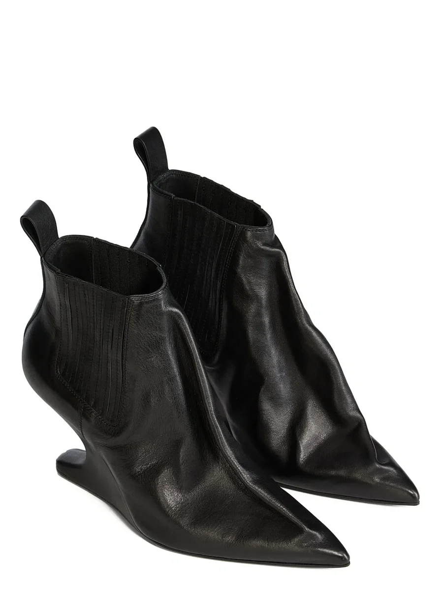 RICK OWENS FW25 CONCORDIANS RUNWAY ENKEL TACO IN ZWART GEWASSEN KALFSLEER