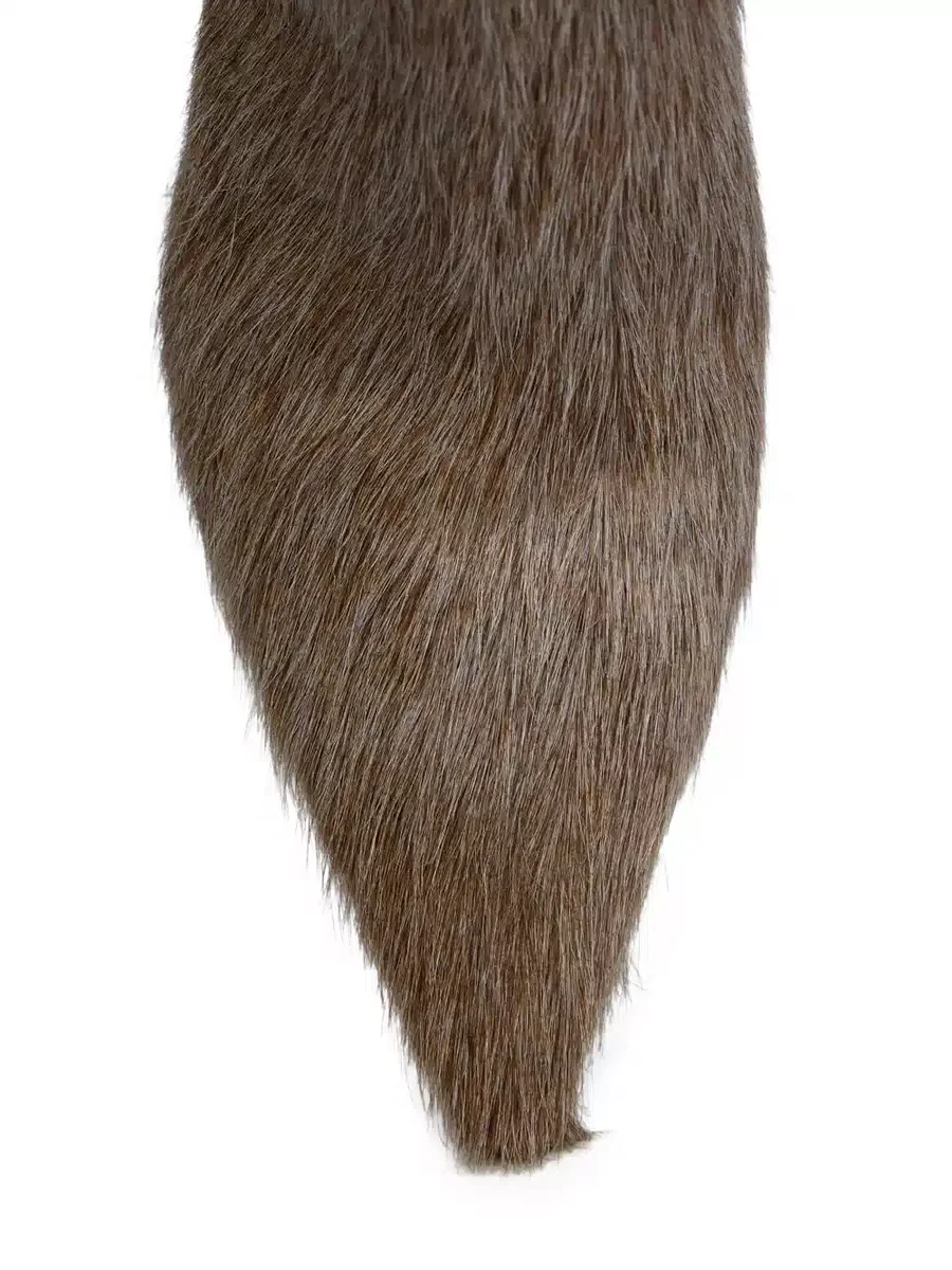 DIT ZWARE LEER IS EEN HAAR-OP RUNDLEER MET GROF HAAR VAN NATUURLIJKE LENGTE. HET IS BEHANDELD MET EEN CORROSIEBESCHERMING, WAARBIJ EEN ONREGELMATIGE INDIGO EN BRUINE MELANGE KLEUR IS GECERTIFICEERD.