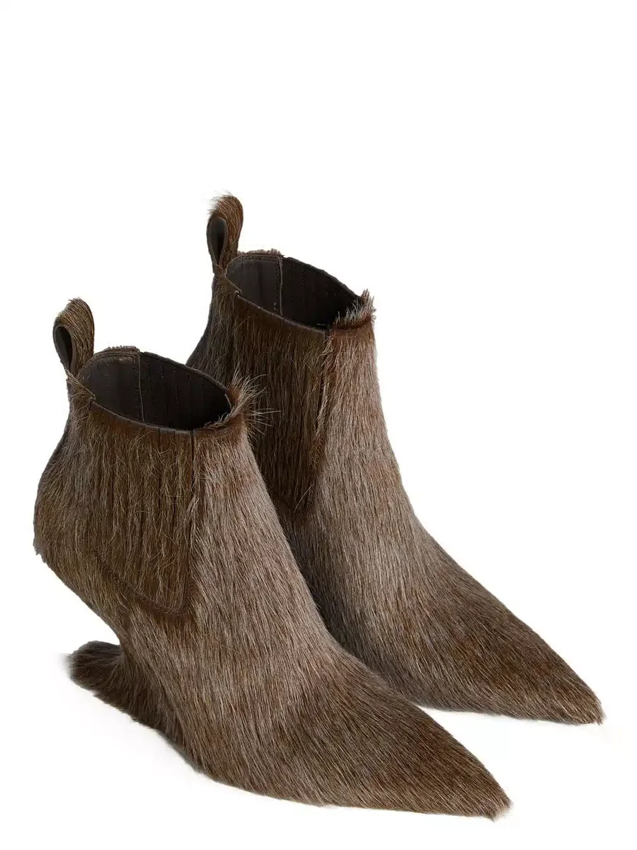 DEZE ANKLE SHARP ZIJN NET ONDER DE ENKELHOOGTE. ZE HEBBEN EEN BOVENWERK VAN LEDER DAT SCHERPE AFSLUIT BIJ DE TEEN. ZE HEBBEN EEN 8 CM HOGE CANTILEVERHAAK, ELASTISCHE ZIJPANELEN EN EEN TREKLIPJE AAN DE ACHTERKANT.