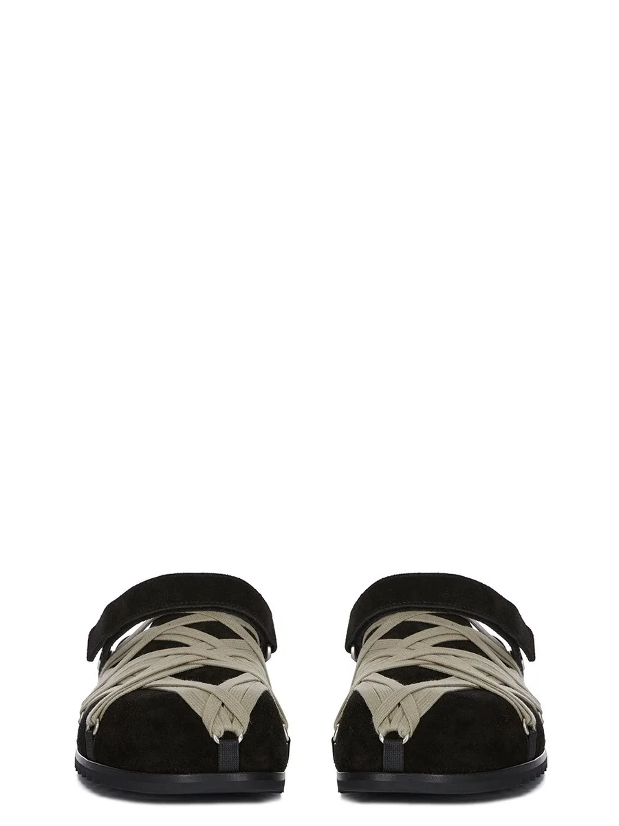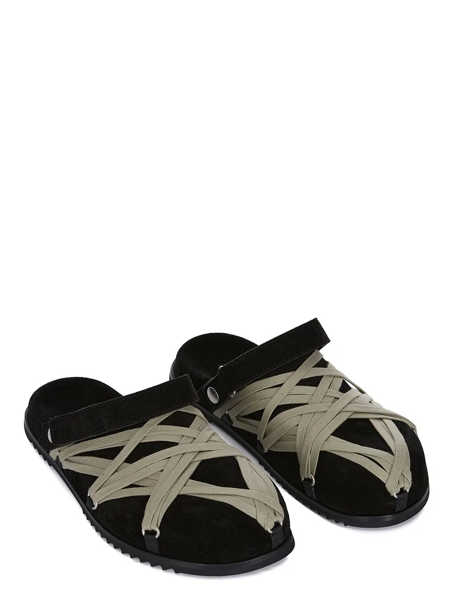 RICK OWENS FW25 CONCORDIANS MEGALACE® MULE GRANOLAS IN ZWART SUÈDE