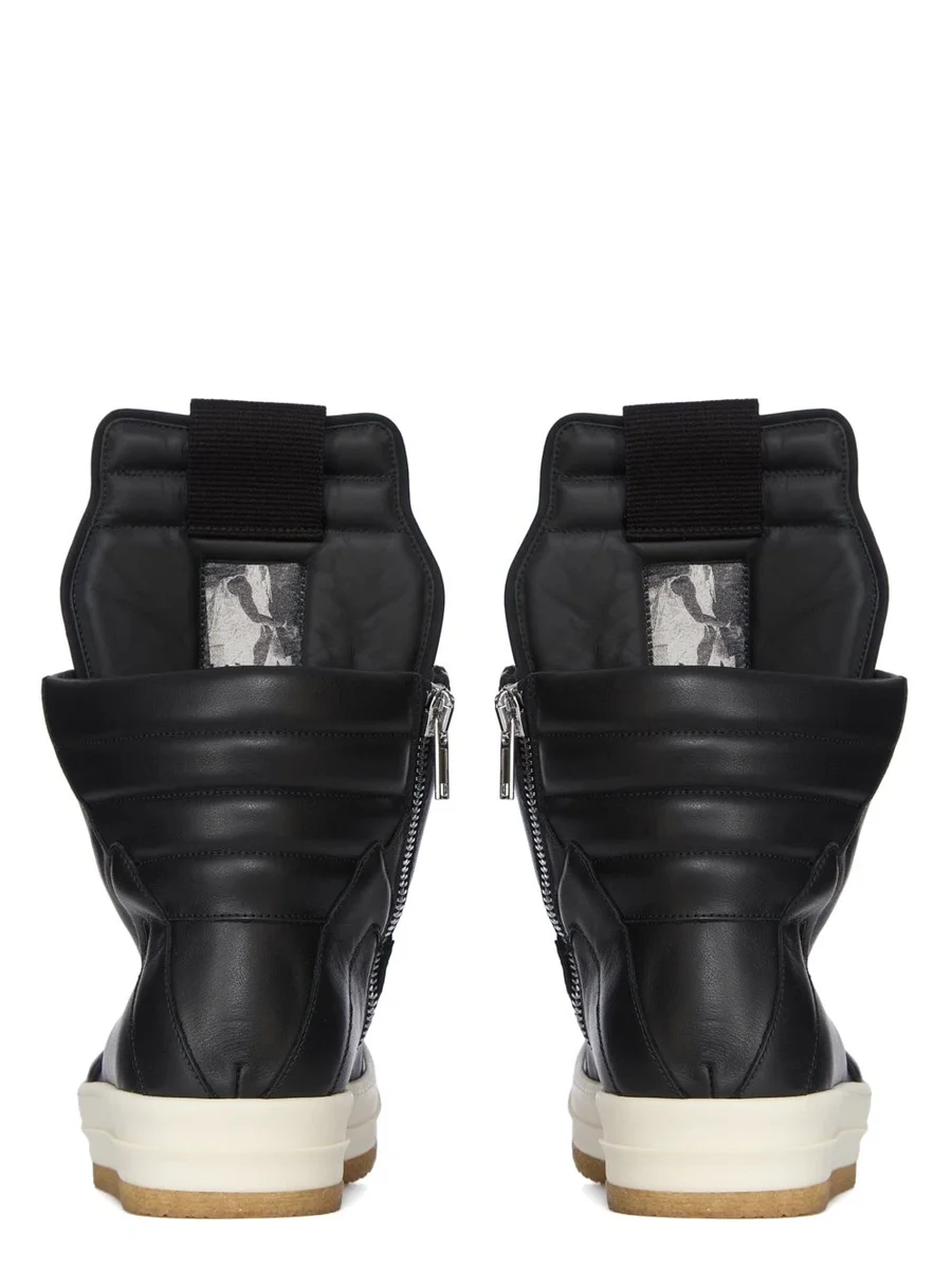 RICK OWENS FW25 CONCORDIANS CREEP GEOBASKET IN ZWART/MELK VOLNERF RUNDERLEER