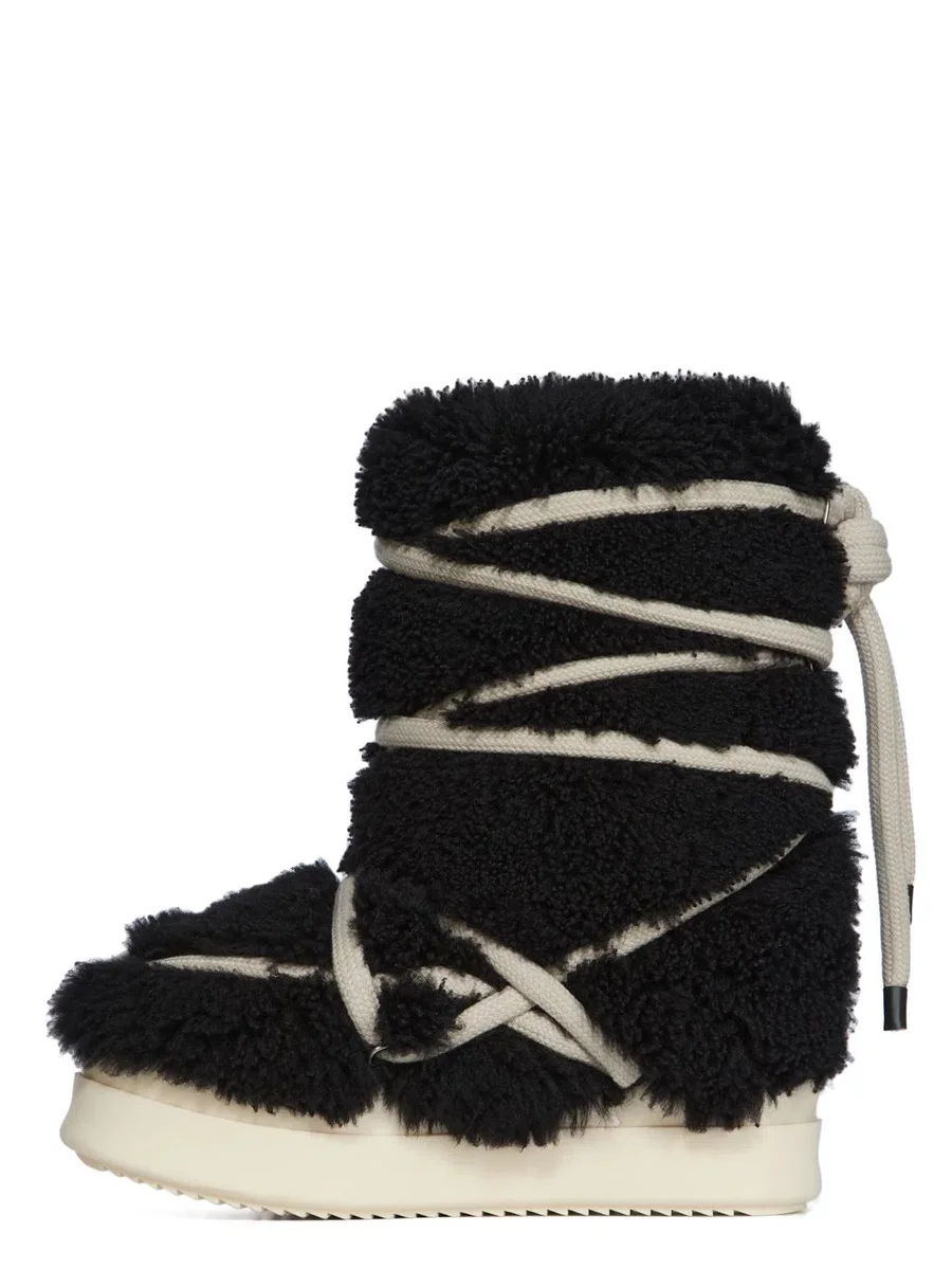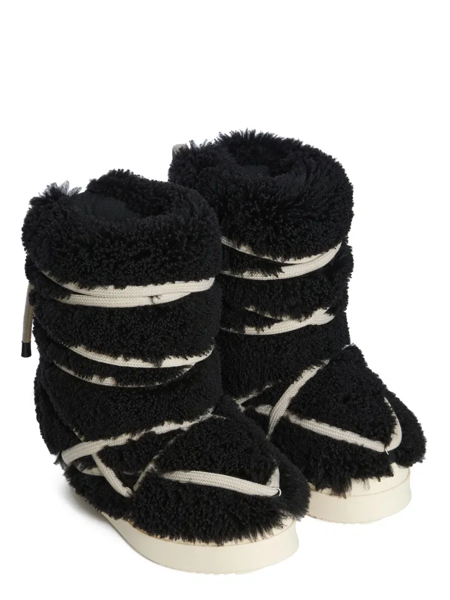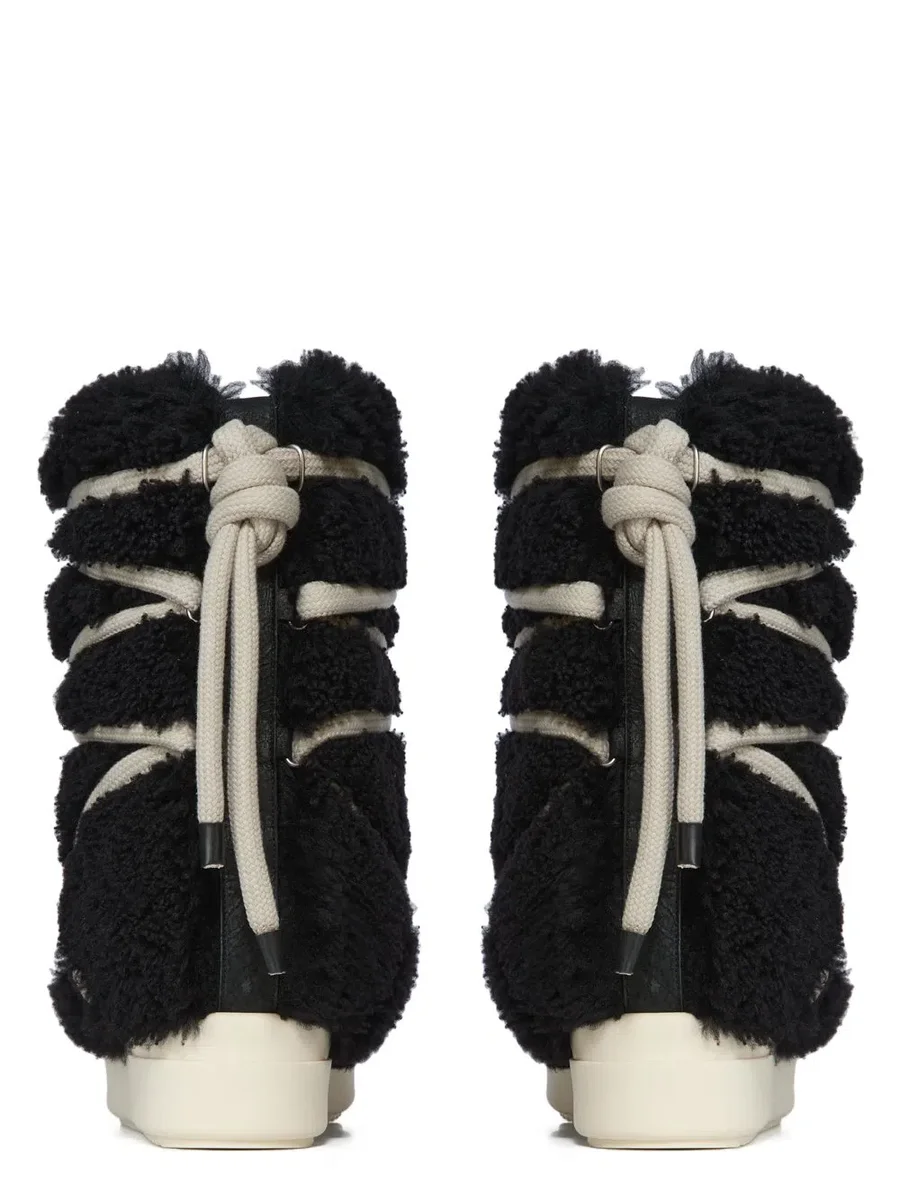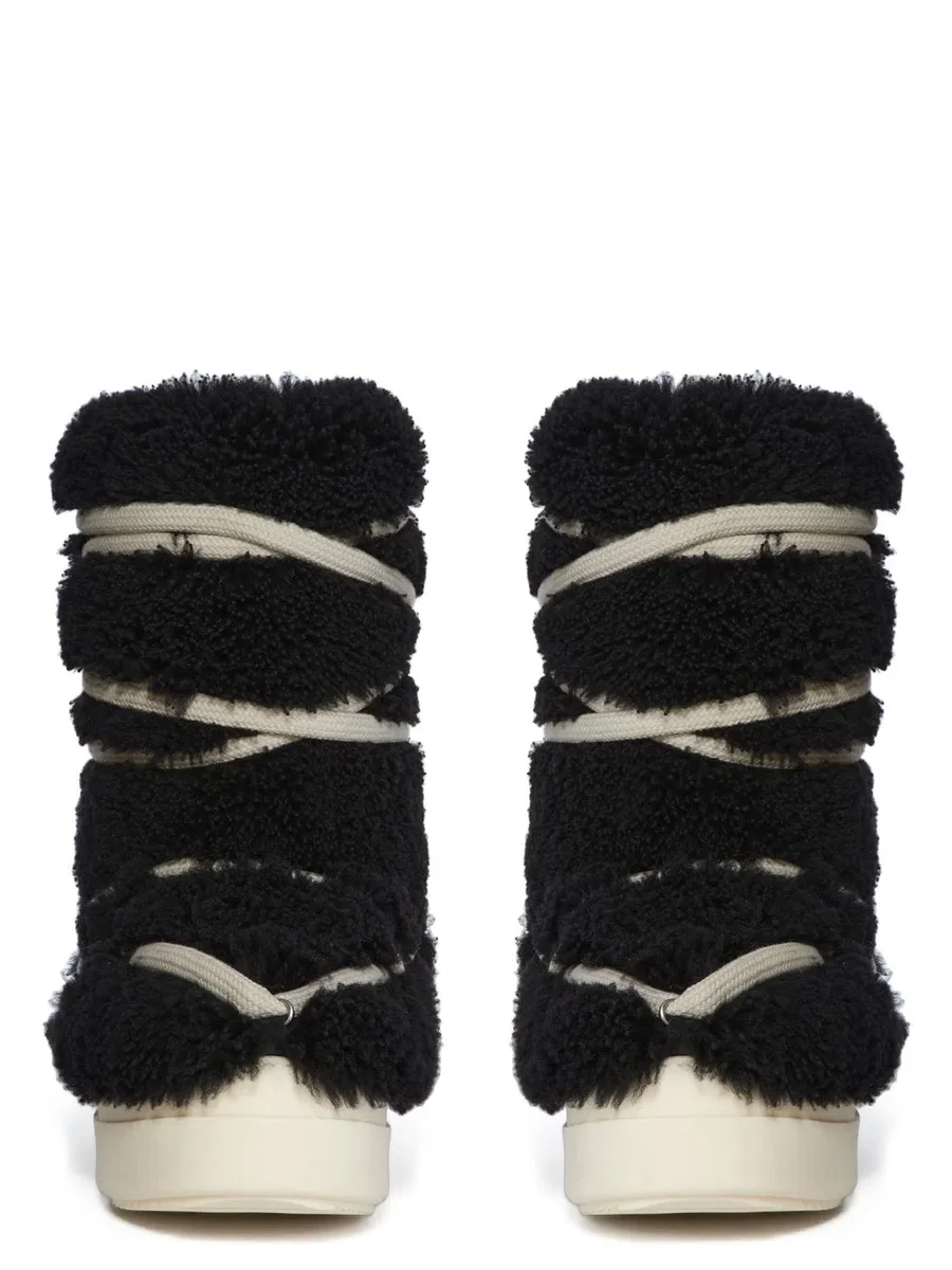 RICK OWENS FW25 CONCORDIANSMEGA BUMPER LUNAR IN ZWART/MELK CURLY SHEARLING