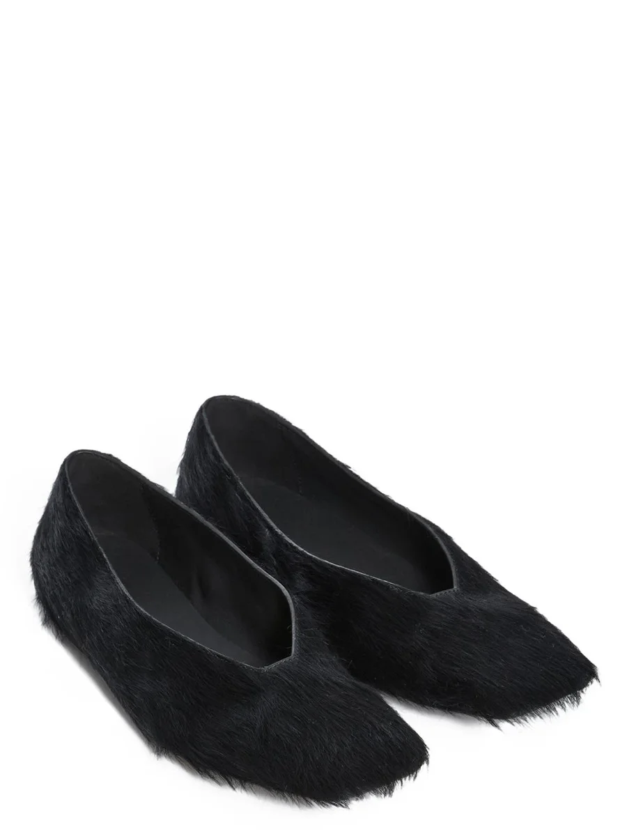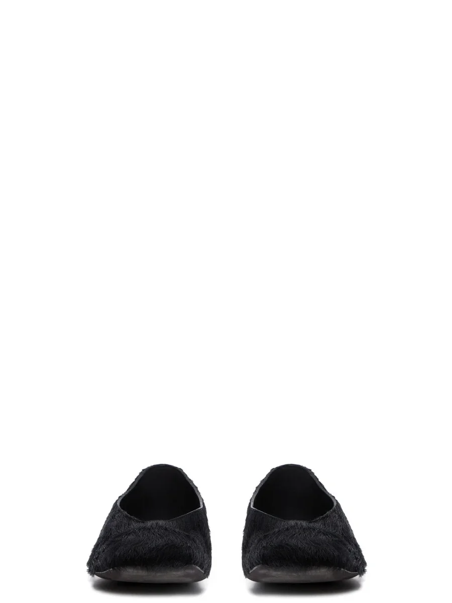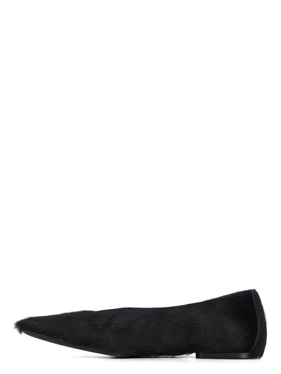 RICK OWENS FW25 CONCORDIANS BALLERINA IN ZWART, ONGESCHOREN RUNDERLEER