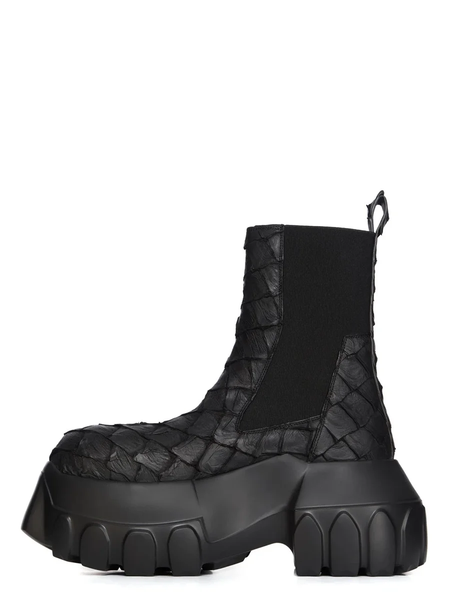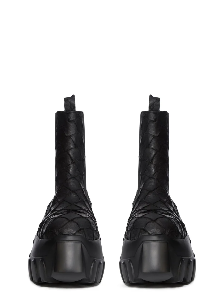 RICK OWENS FW25 CONCORDIANS BEATLE MEGA TRACTOR IN ZWARTE WAXY PIRARUCU