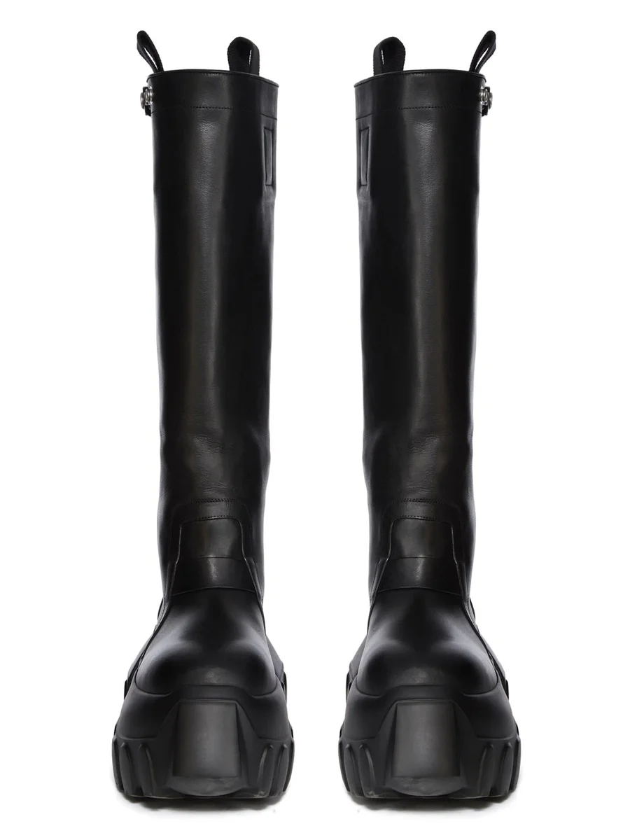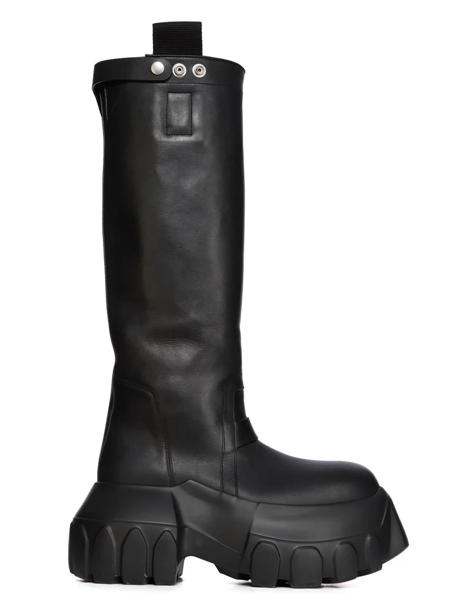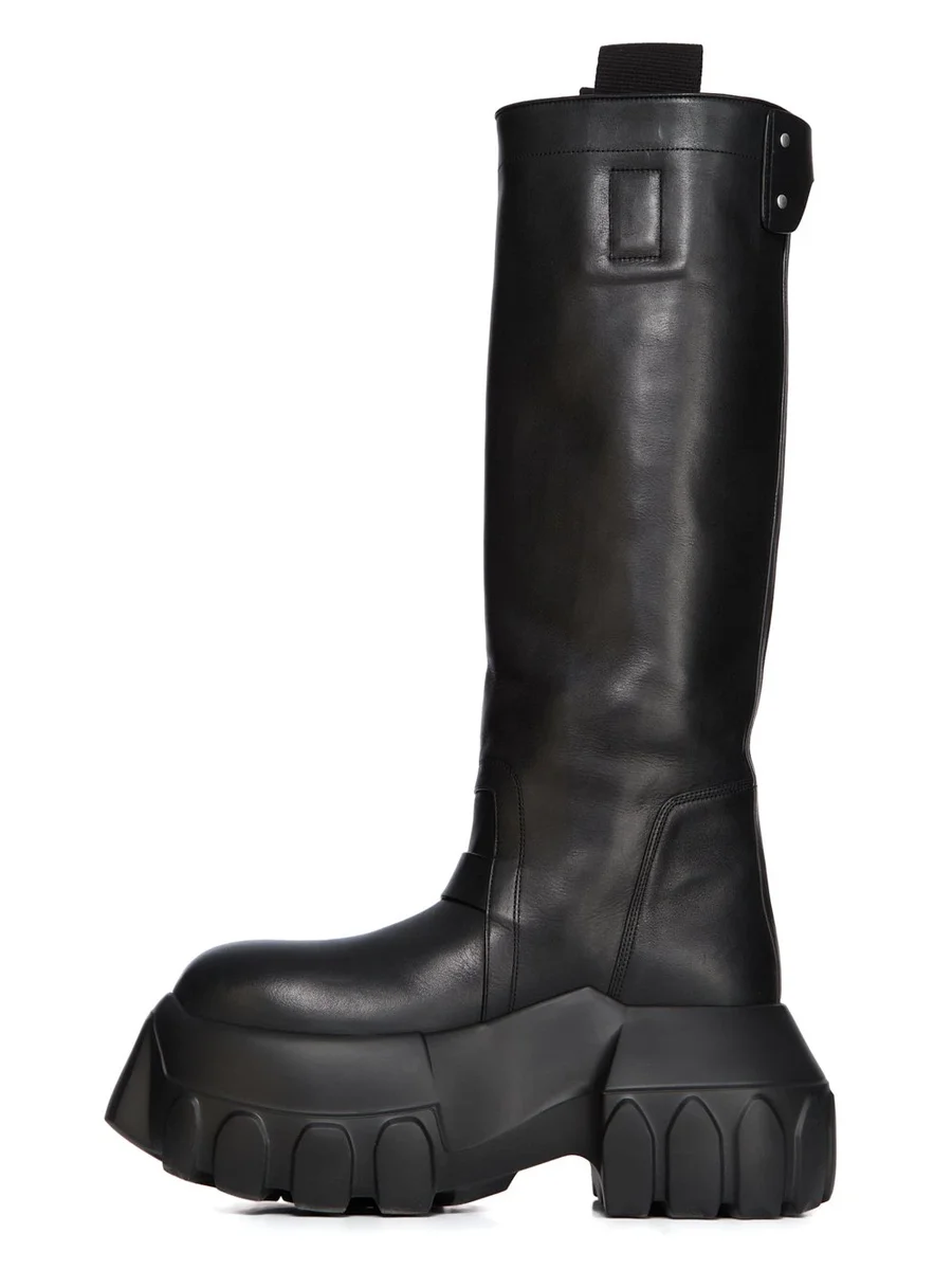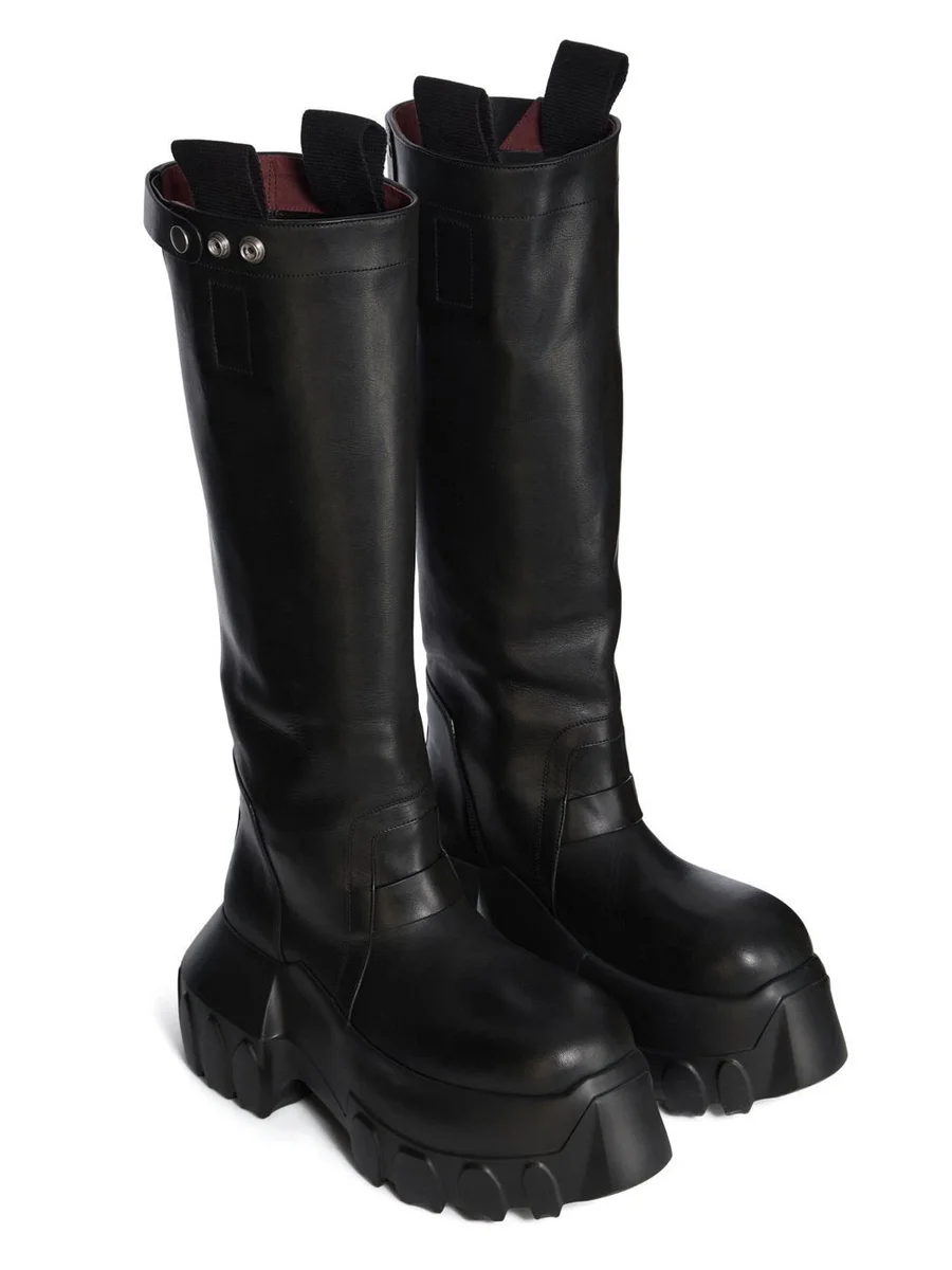 RICK OWENS FW25 CONCORDIANS PULL-ON MEGA TRACTOR IN ZWART GEWASSEN KALFSLEER