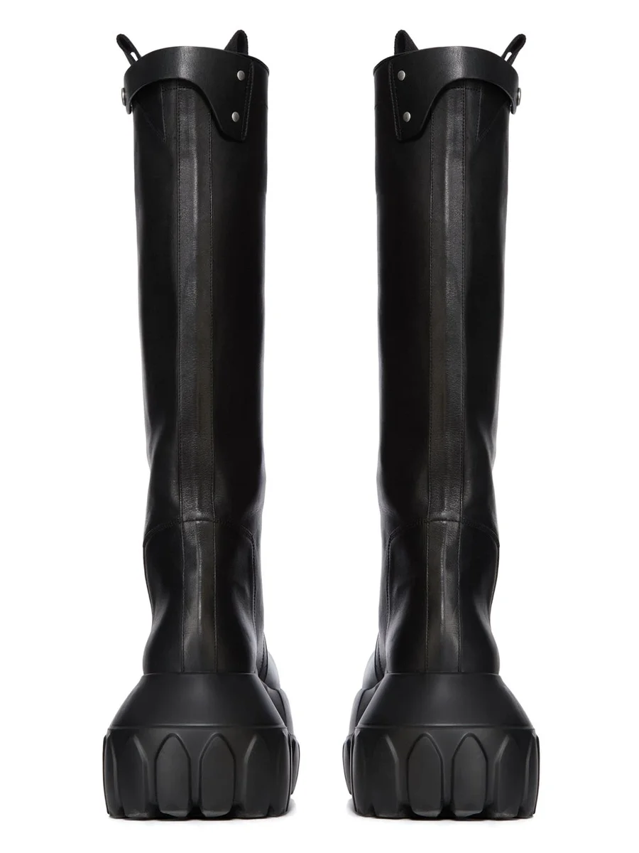 RICK OWENS FW25 CONCORDIANS TREKKER MEGA TRACTOR IN ZWART GEWASSEN KALFSLEER