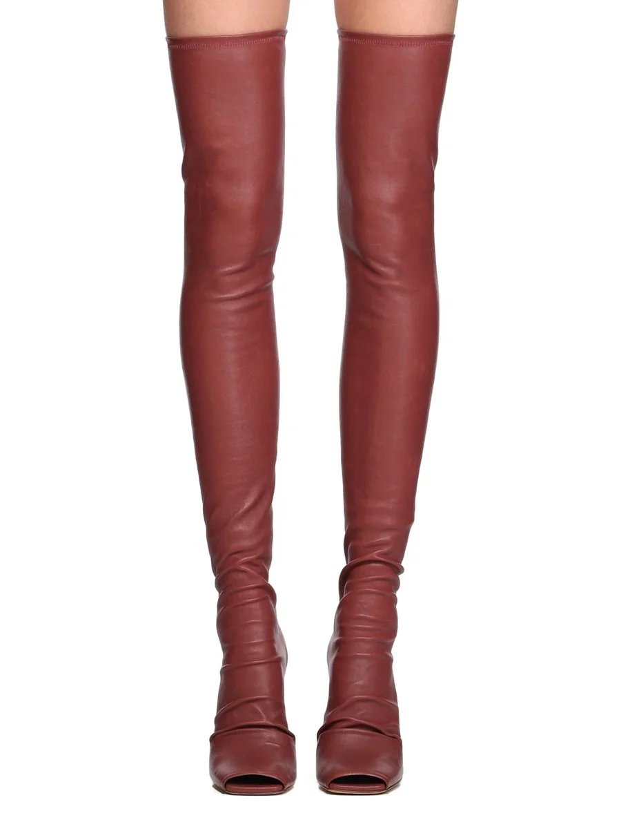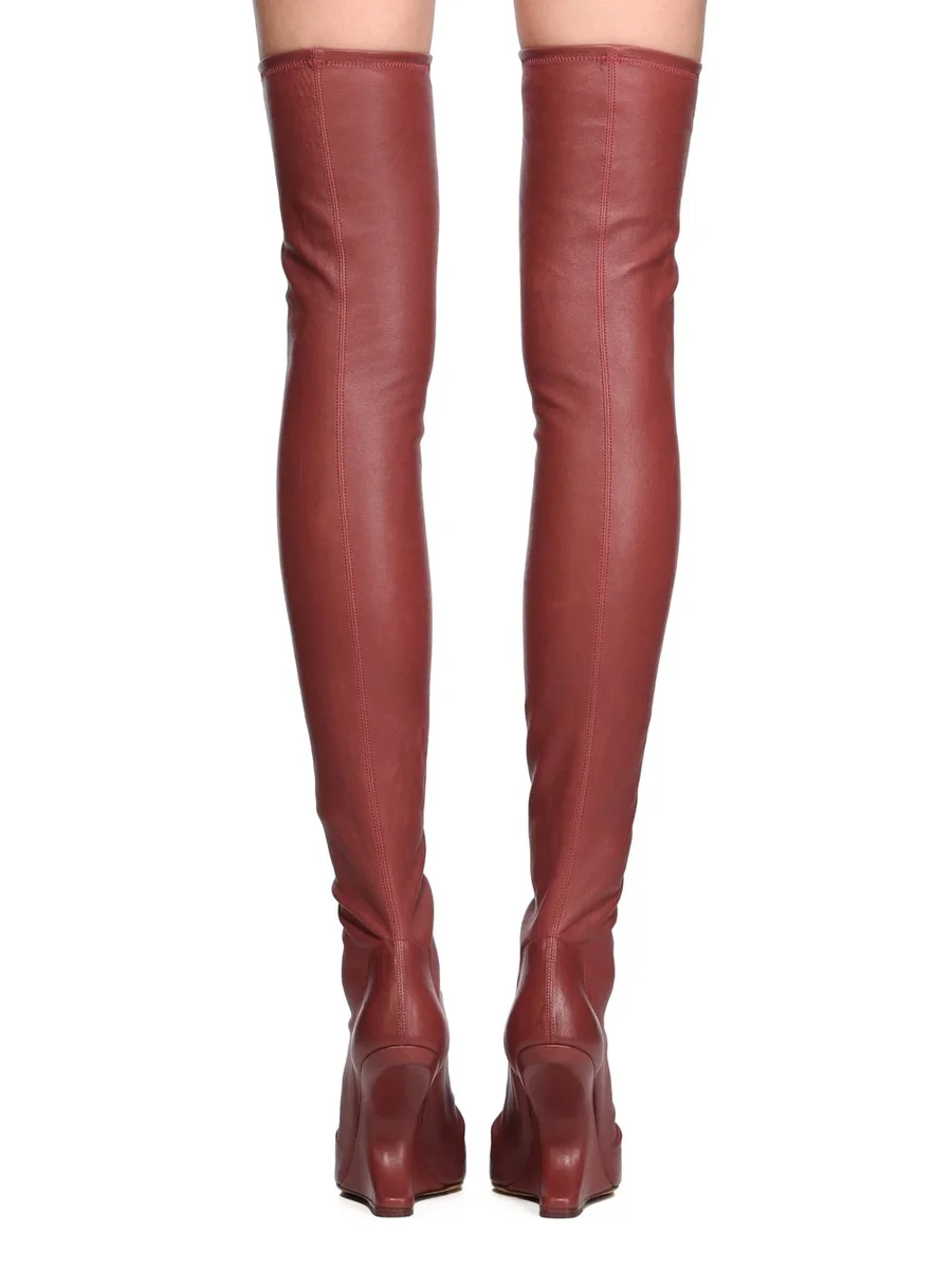 RICK OWENS FW25 CONCORDIANS CANTILEVER 11 THIGH HIGH IN PALISSANDER STRETCHLAMMENLEER