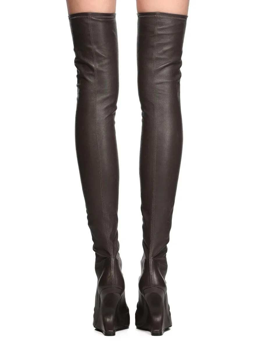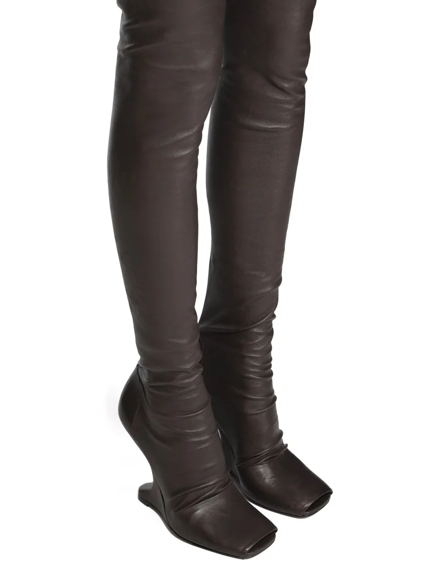RICK OWENS FW25 CONCORDIANS CANTILEVER 11 THIGH HIGH IN DARKDUST STRETCH LAMSLEER