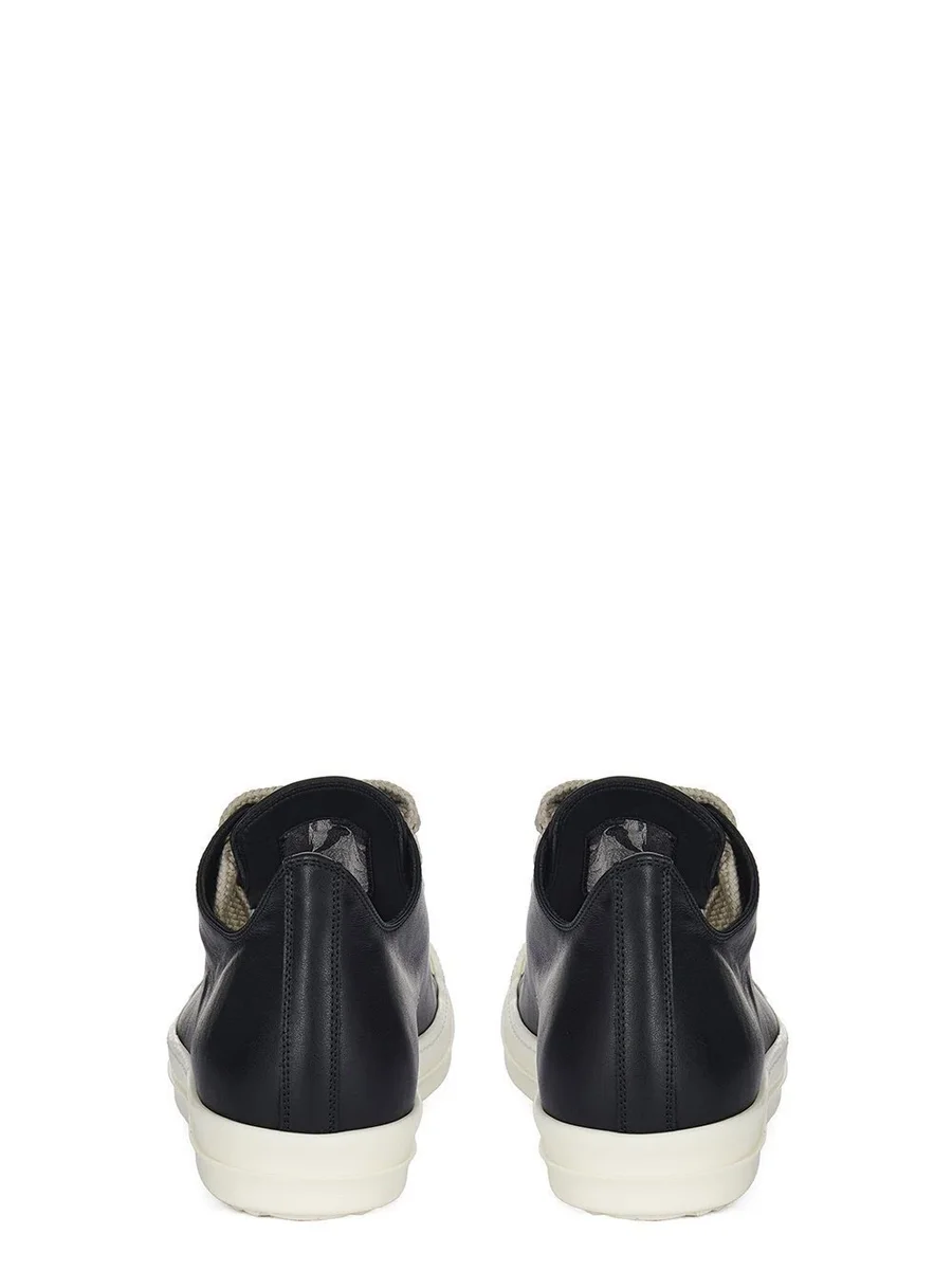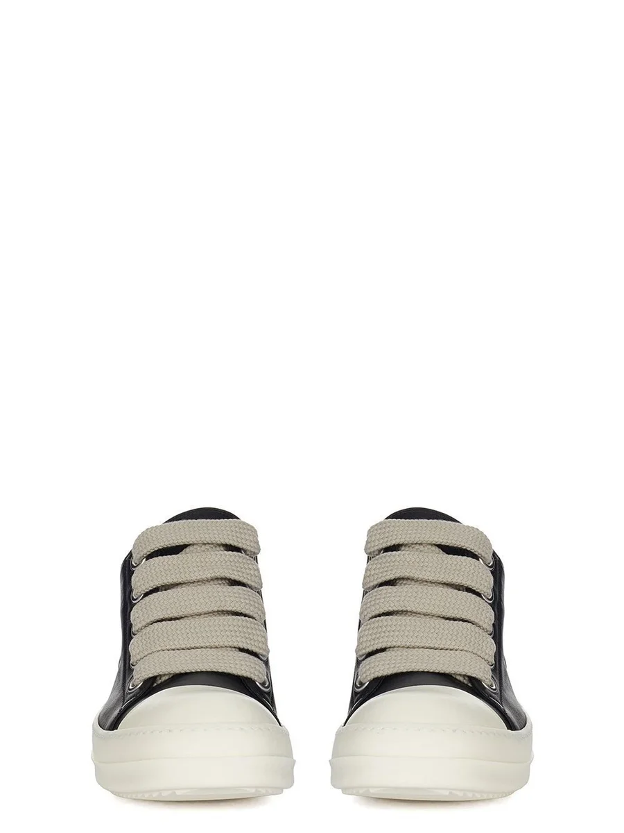 RICK OWENS FW25 CONCORDIANS JUMBOLACE LAGE SNEAKERS IN ZWART/MELK/MELK VOLNERF RUNDERLEER