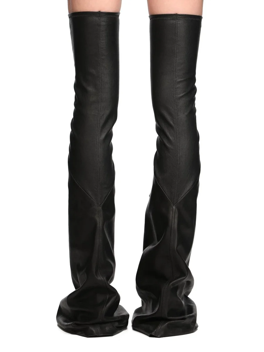 RICK OWENS FW25 CONCORDIANS CARGO FETISH SNEAKS IN ZWART/MELK STRETCH LAMSLEER EN GEWASSEN KALFSLEER