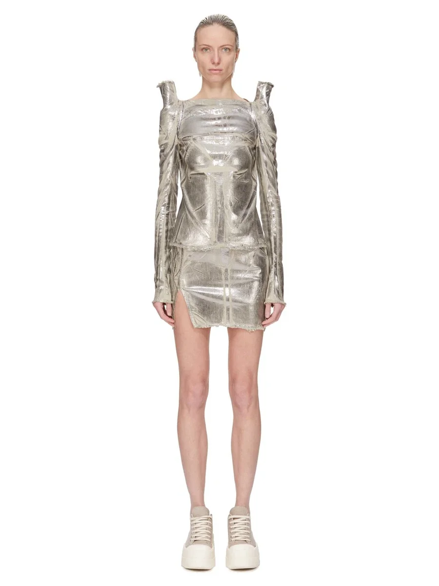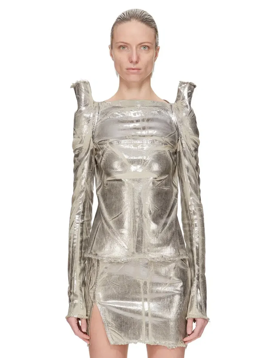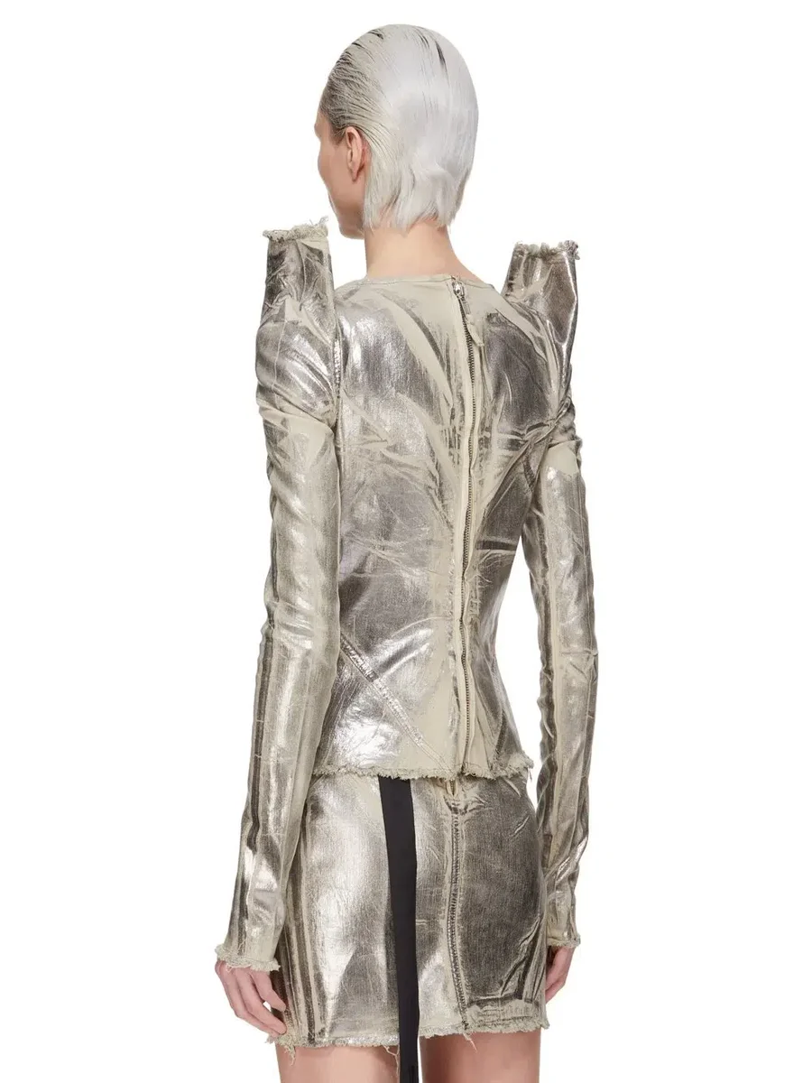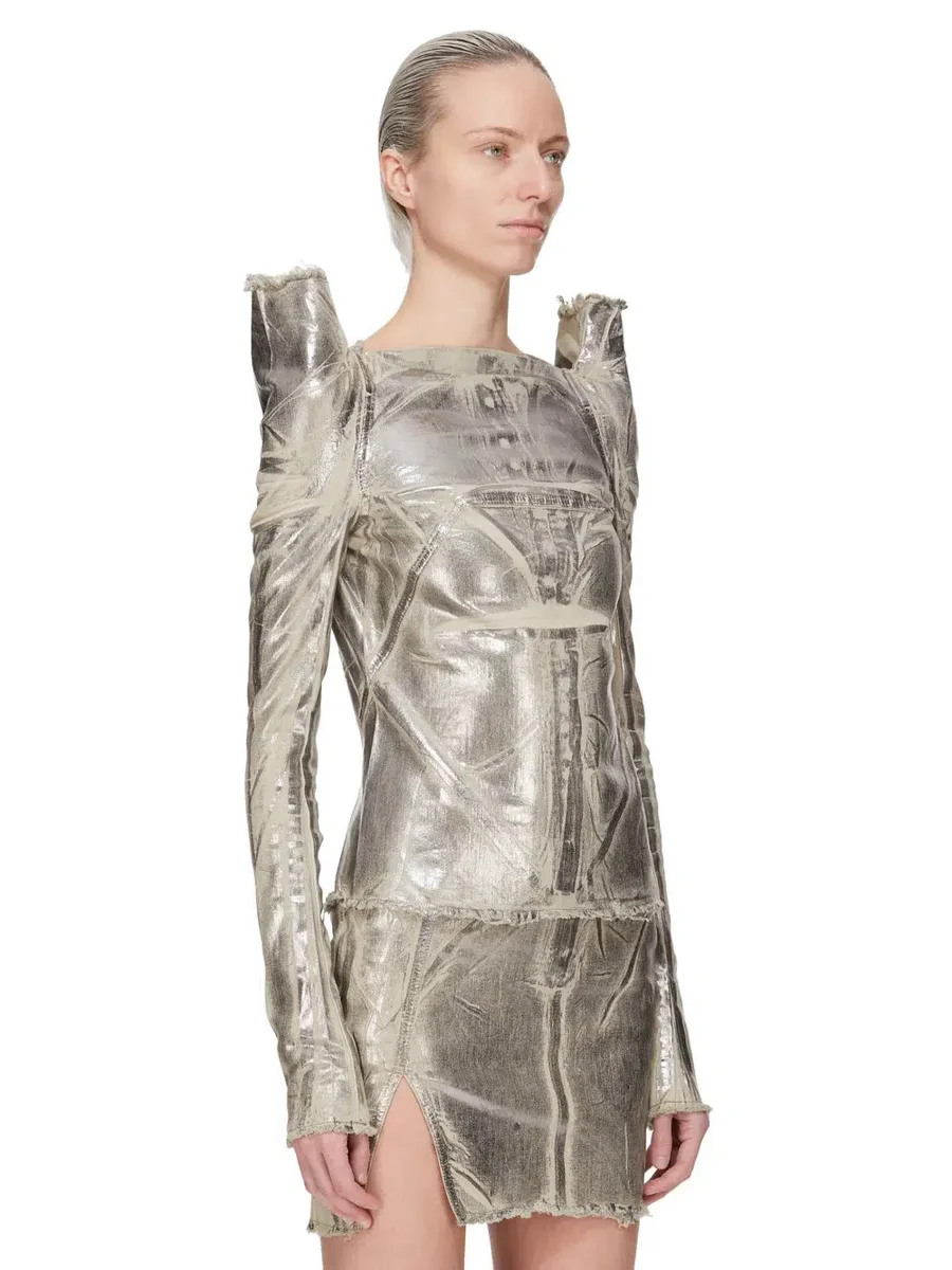 DRKSHDW FW25 CONCORDIANS TEC TOP IN PALLADIUM FOLIE STRETCH DENIM