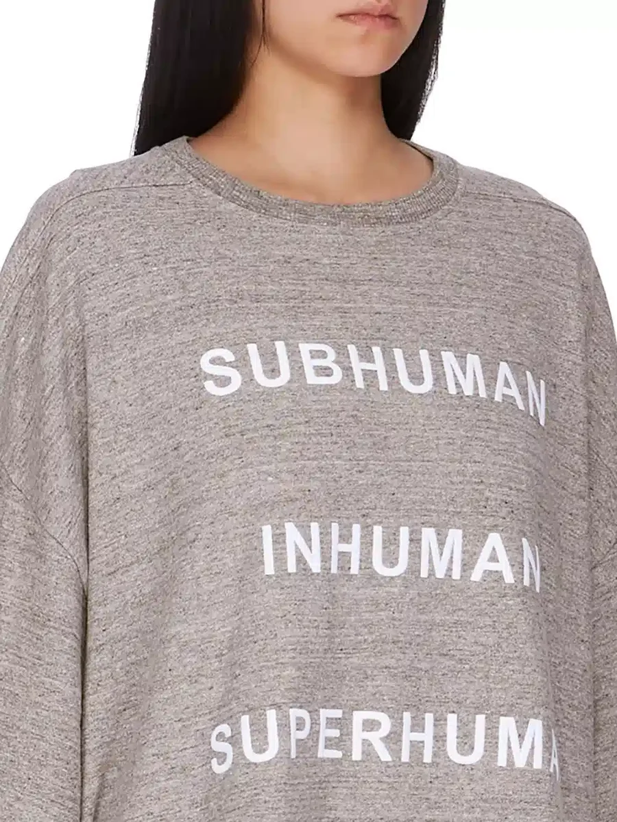 HET HEEFT EEN 3D GEBORDUURD CHAMPION X RICK OWENS SUBHUMAN, INHUMAN, SUPERHUMAN, CHAMPION-LOGO OP DE VOORKANT EN EEN CHAMPION-LOGO OP DE RECHTERMOUW.