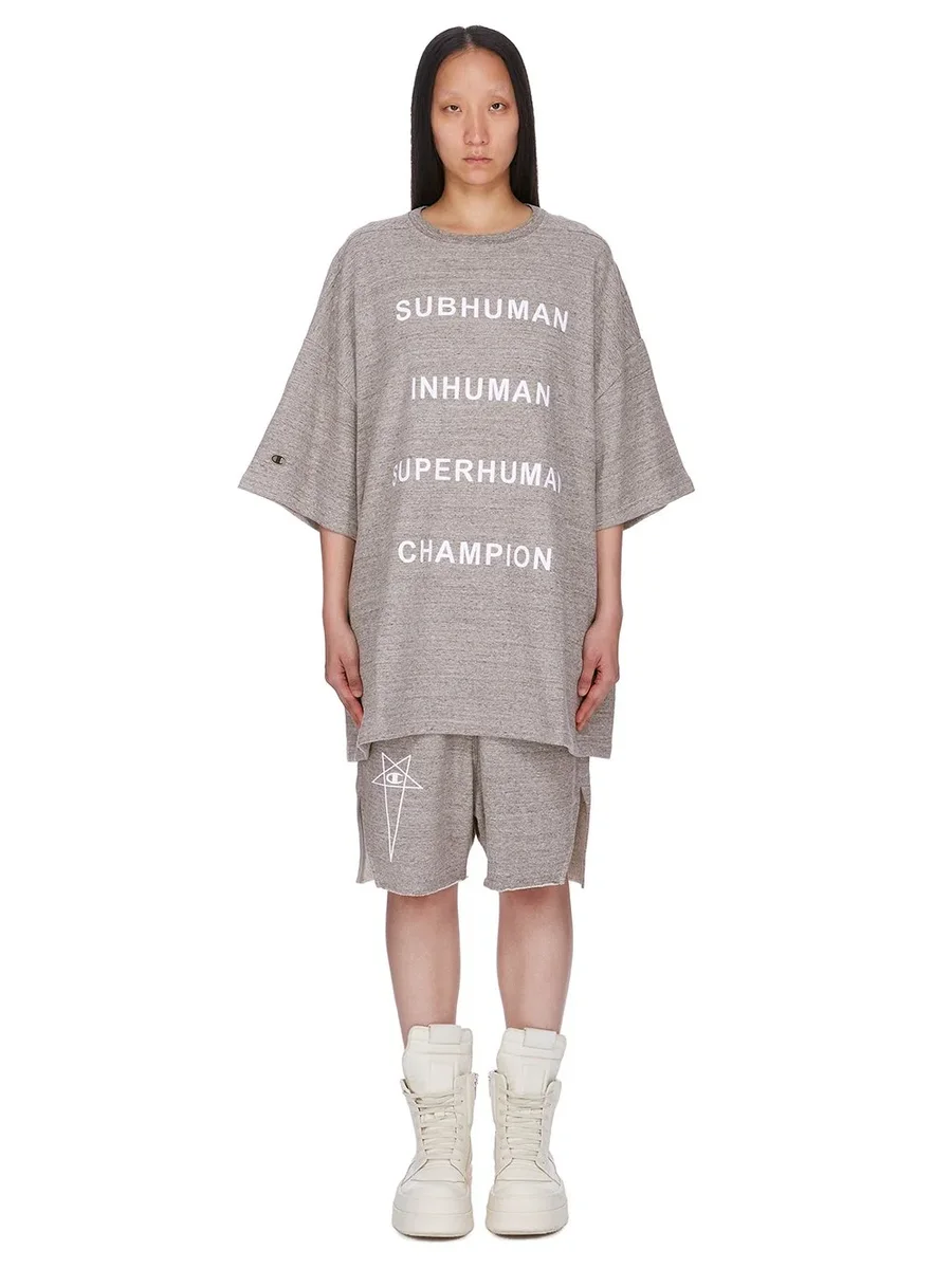 CHAMPION X RICK OWENS SS25 TOMMY T IN GRIJS MELANGE MELANGE FELPA JERSEY
