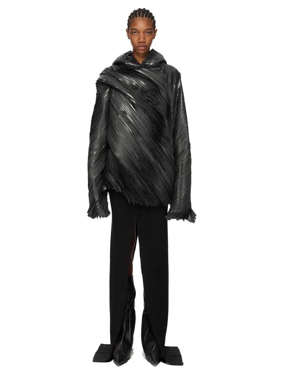 RICK OWENS FW25 CONCORDIANS RUNWAY SEB HOODIE IN ZWARTE LATEX